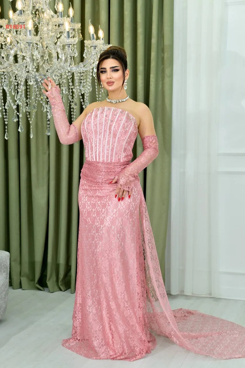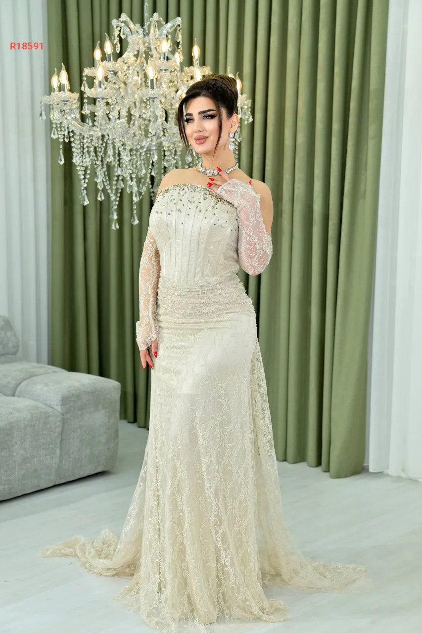 فستان سهرة طويل بتفاصيل مرصع...