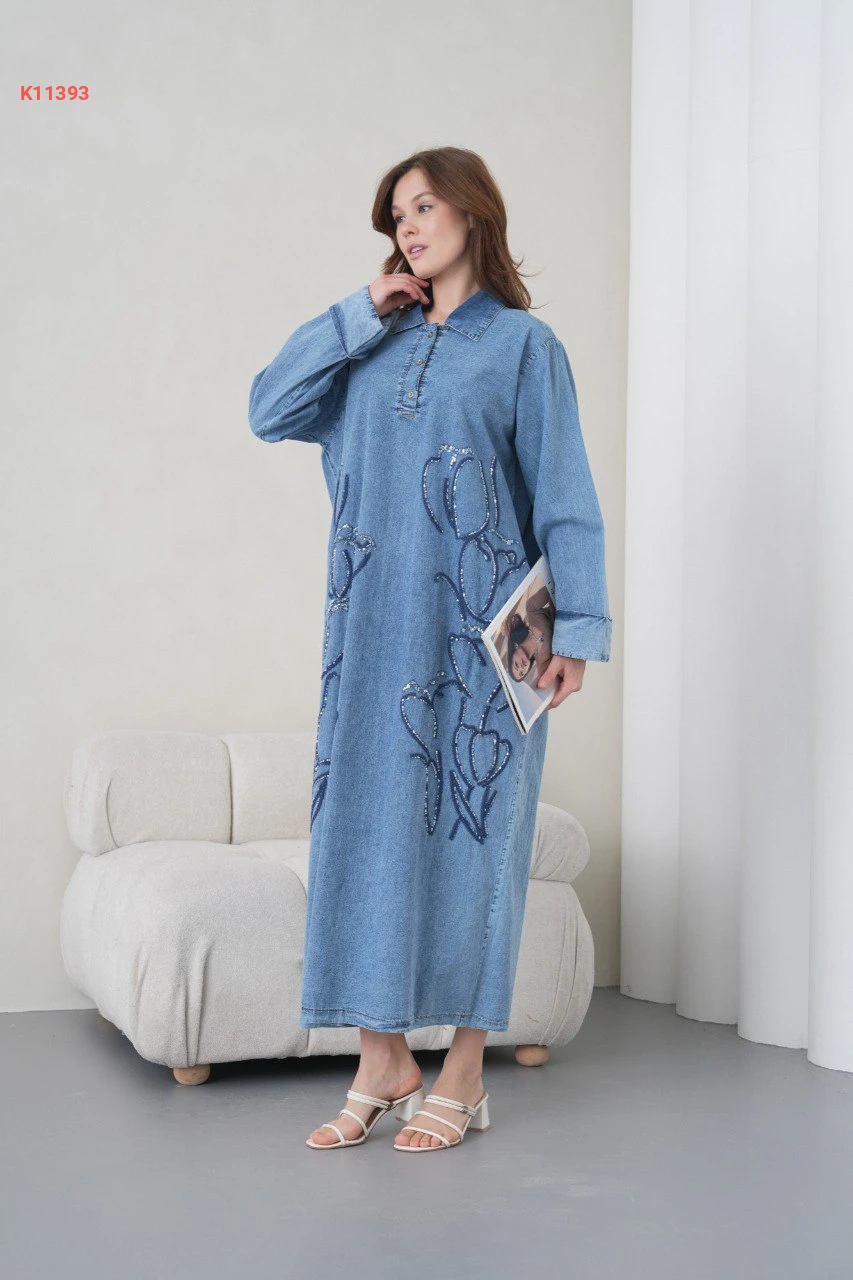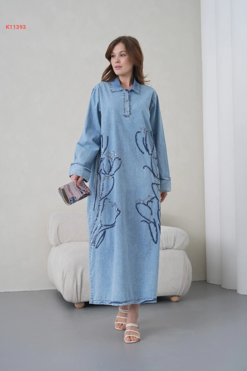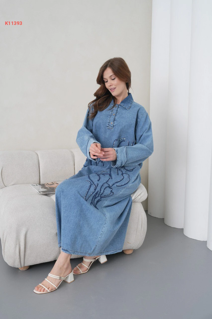 فستان جينز طويل مطرز