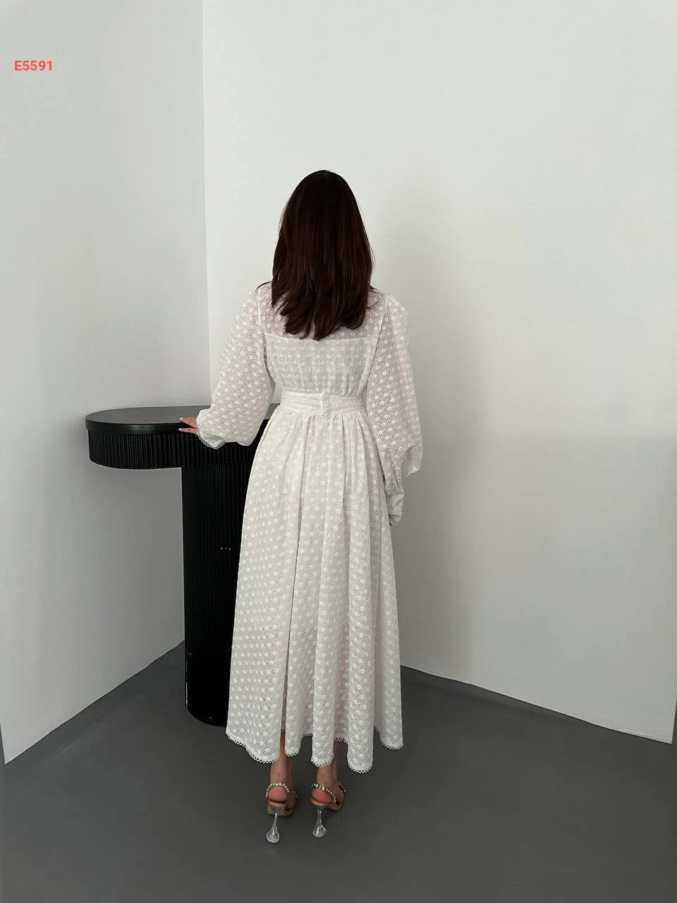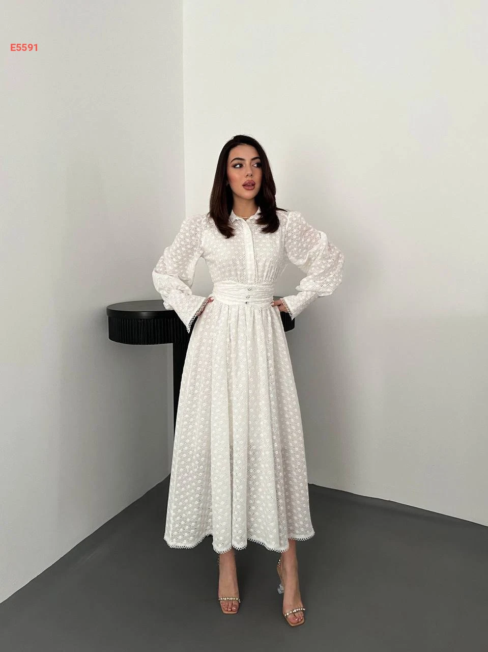 فستان طويل مطرز مع زنار عريض