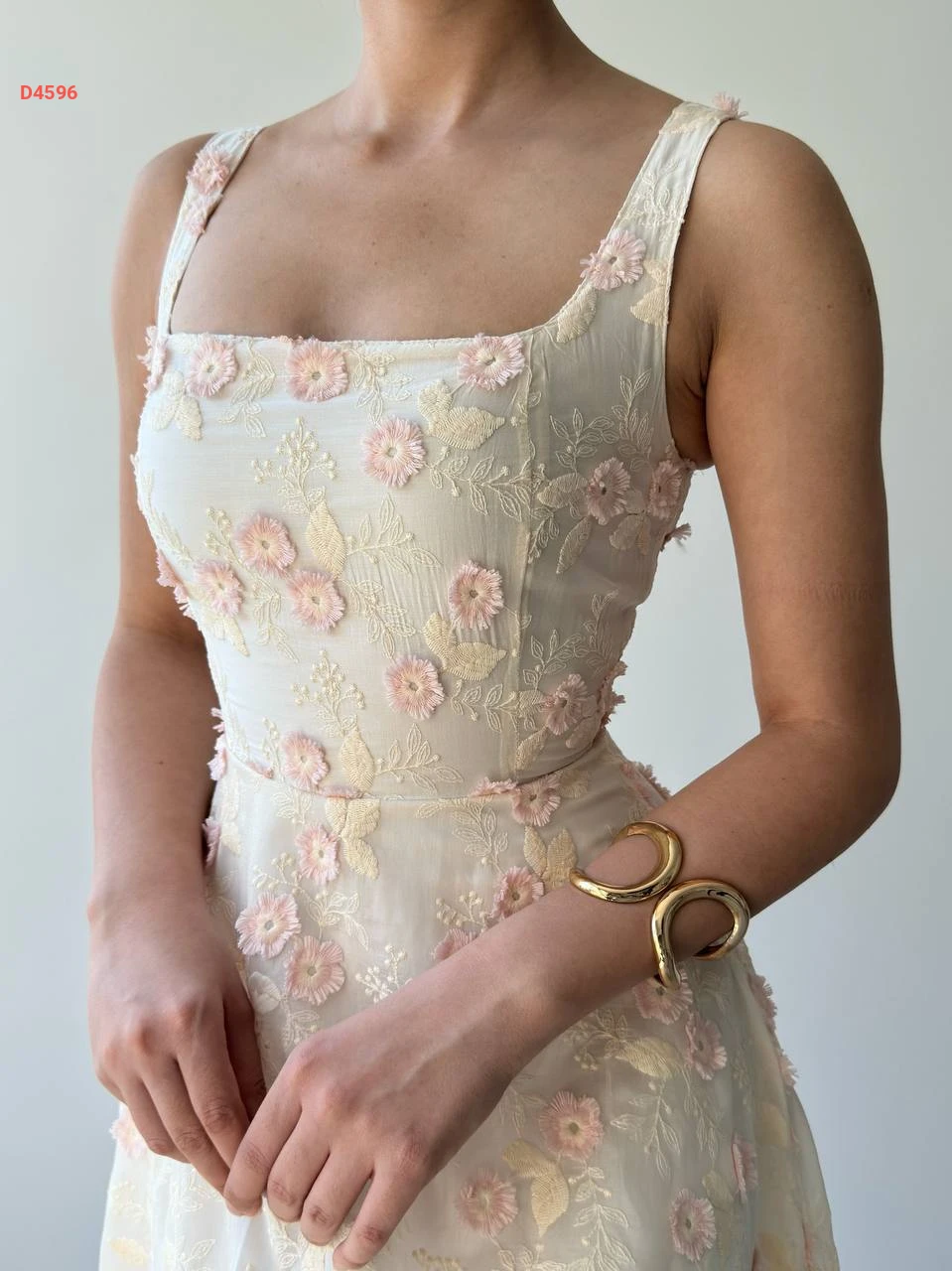 فستان طويل حفر مطرز ورد