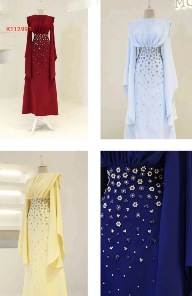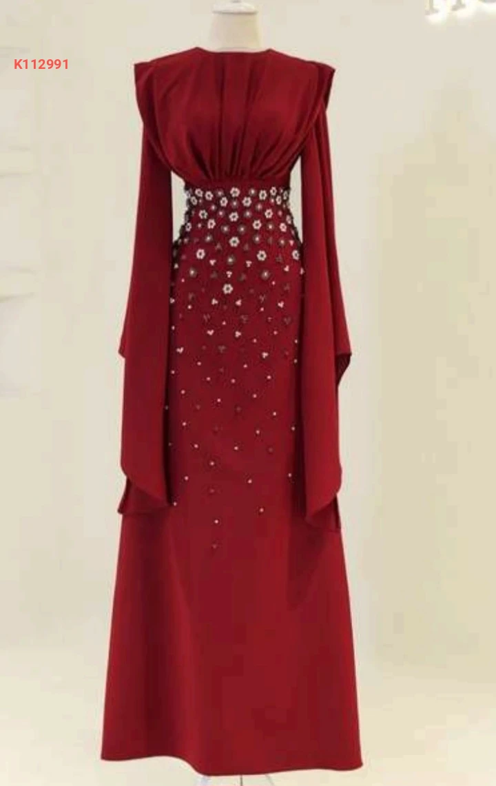 فستان سهرة طويل مزين لولو وأحجار