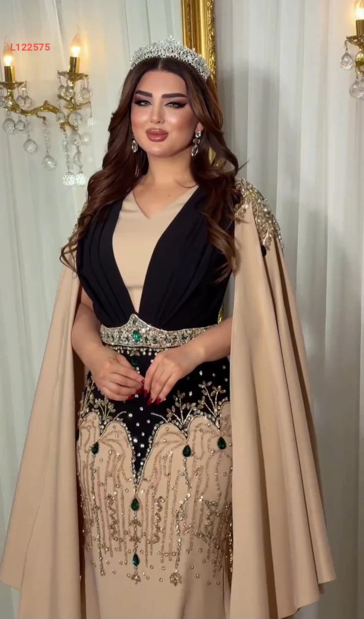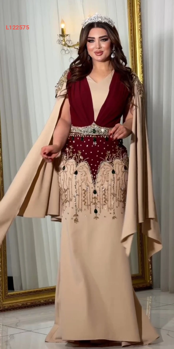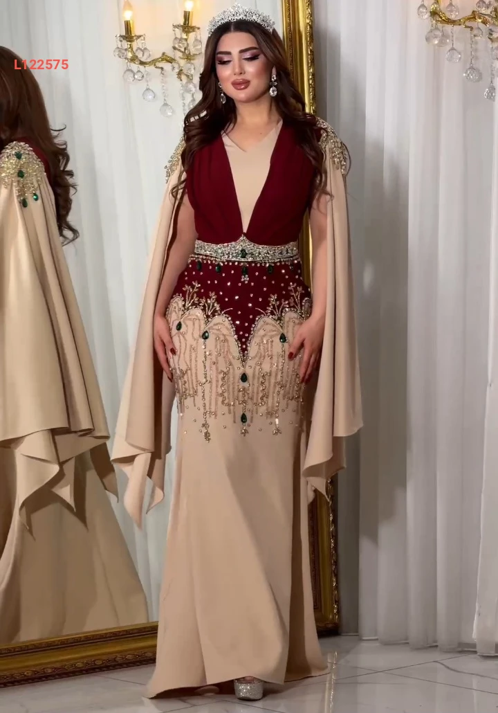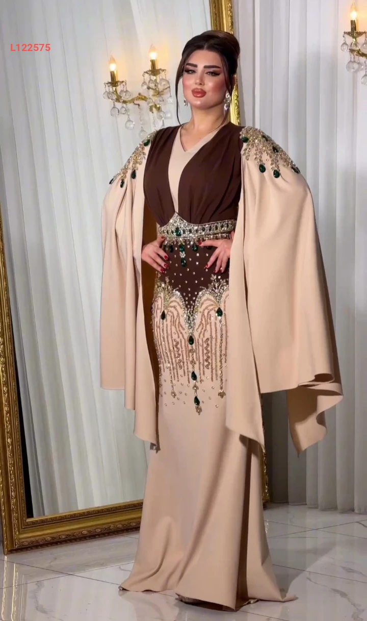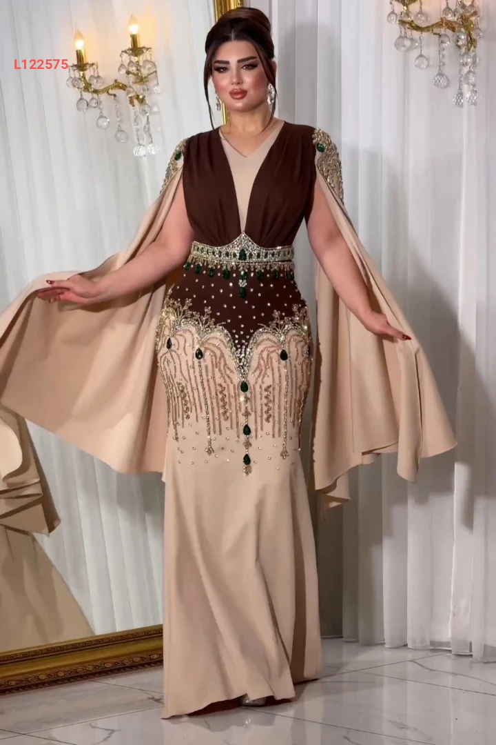 فستان سهرة طويل تطريز مع أحجار ملونة