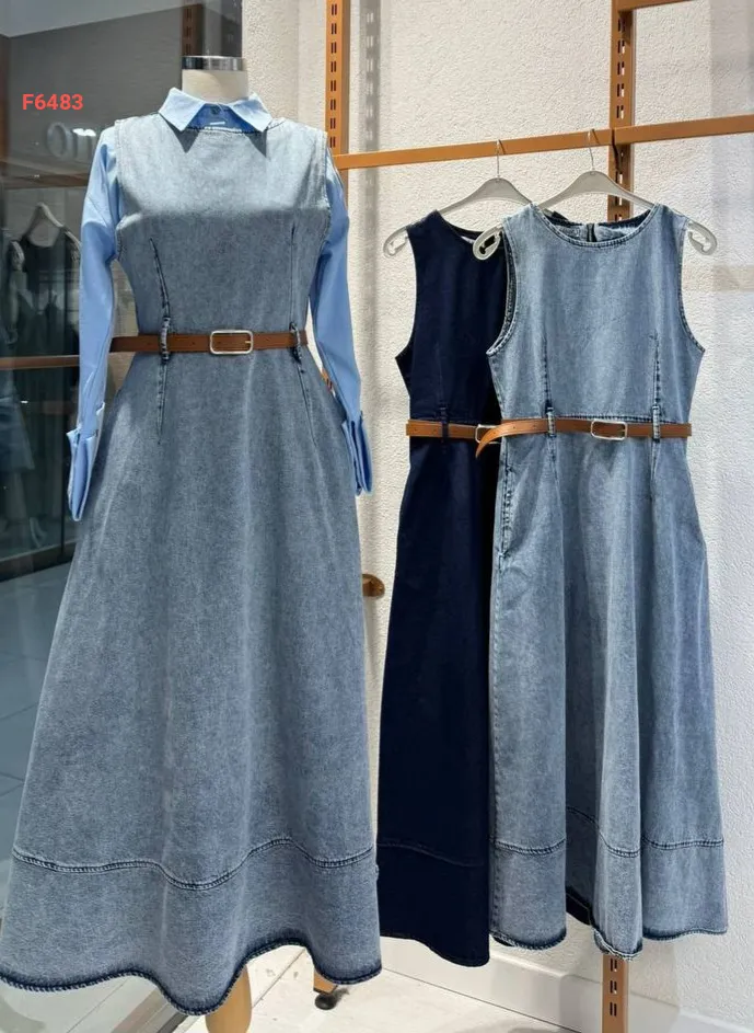 فستان جينز حفر طويل كلوش