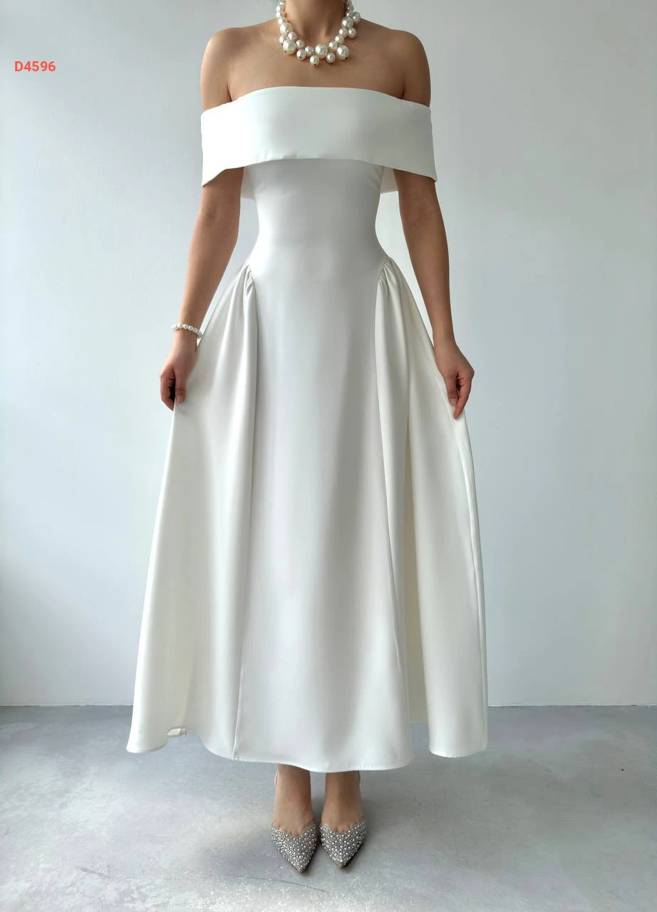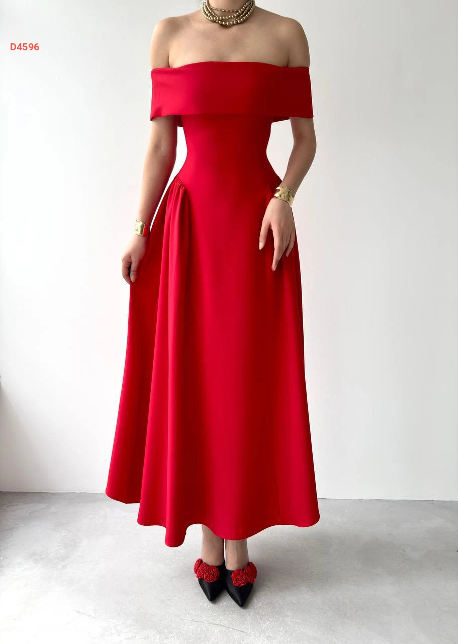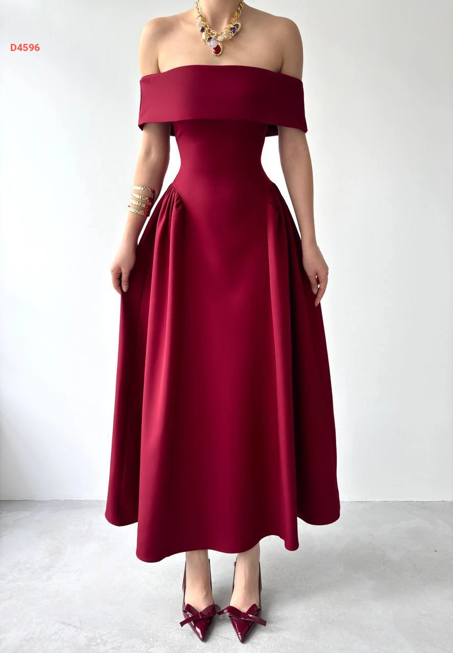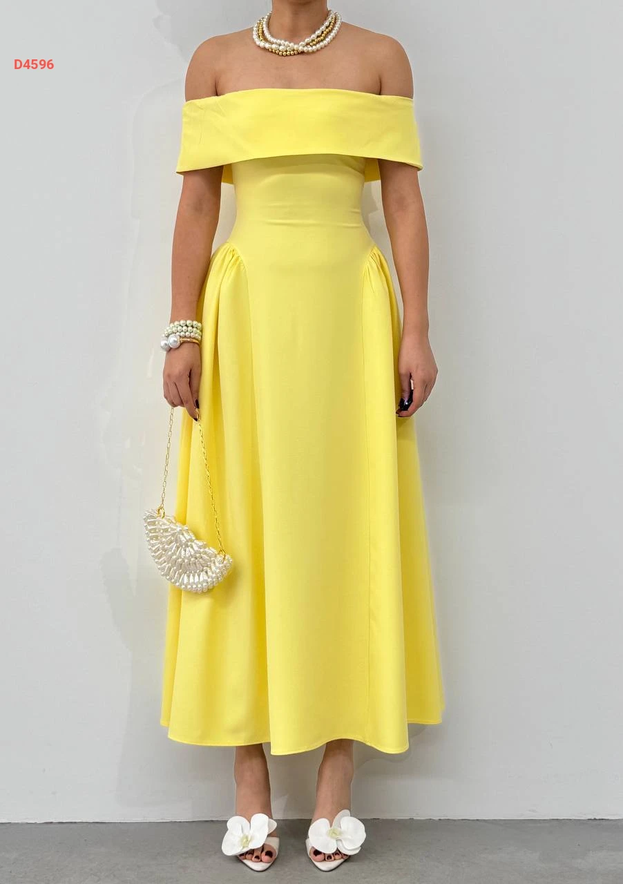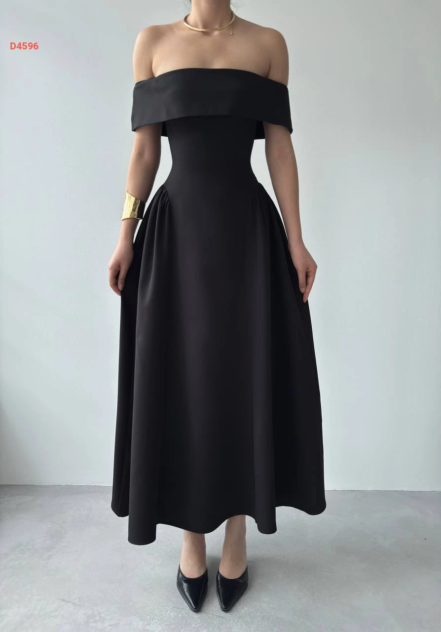 فستان طويل كلوش بياقة مادونا