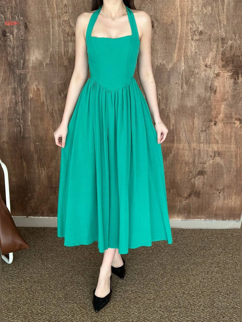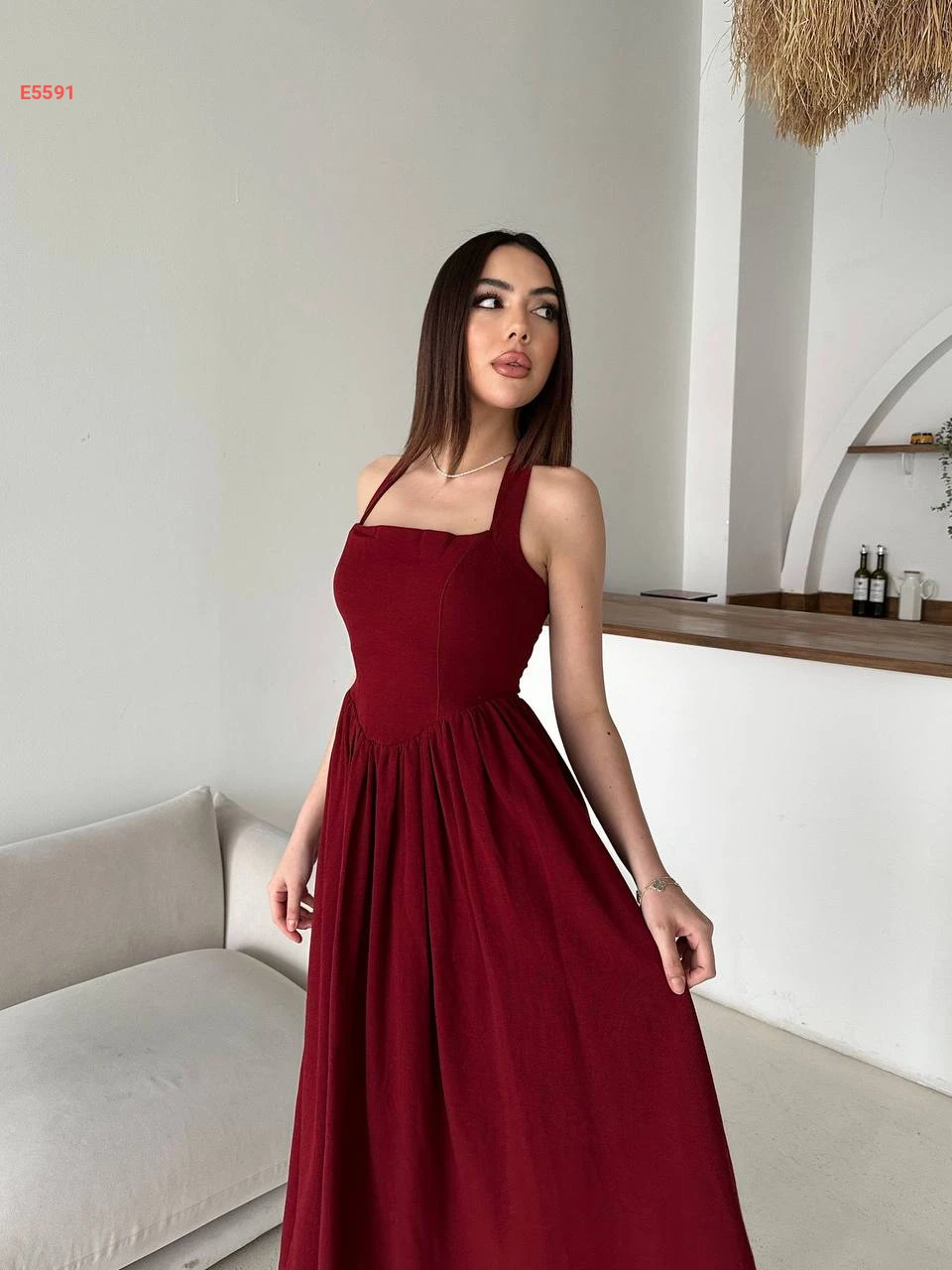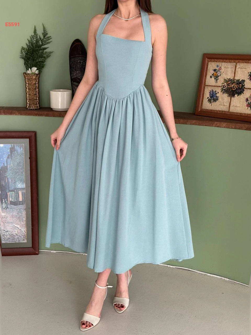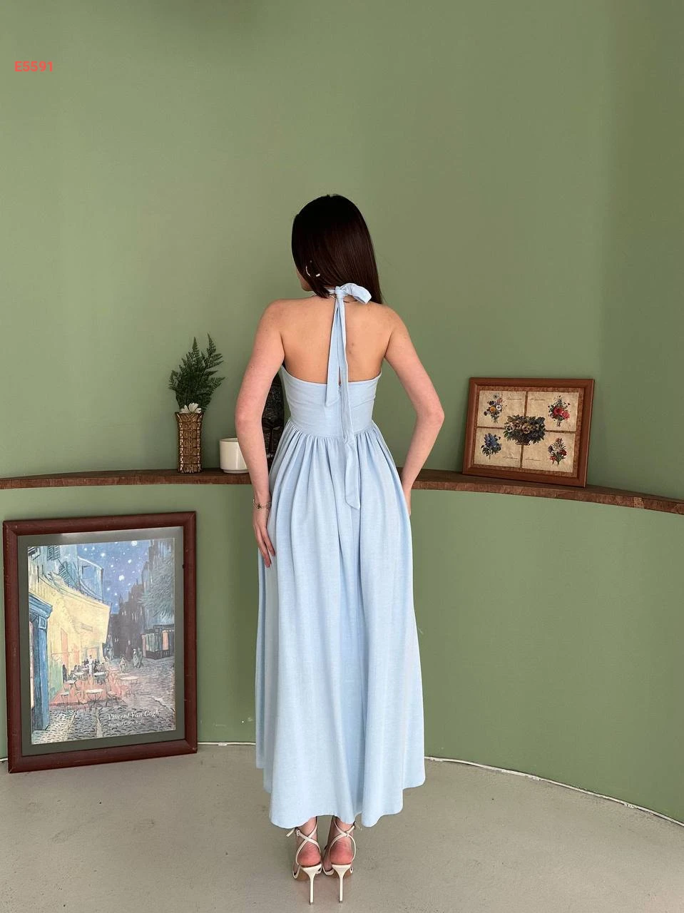 فستان طويل كلوش بربطة عالرقبة