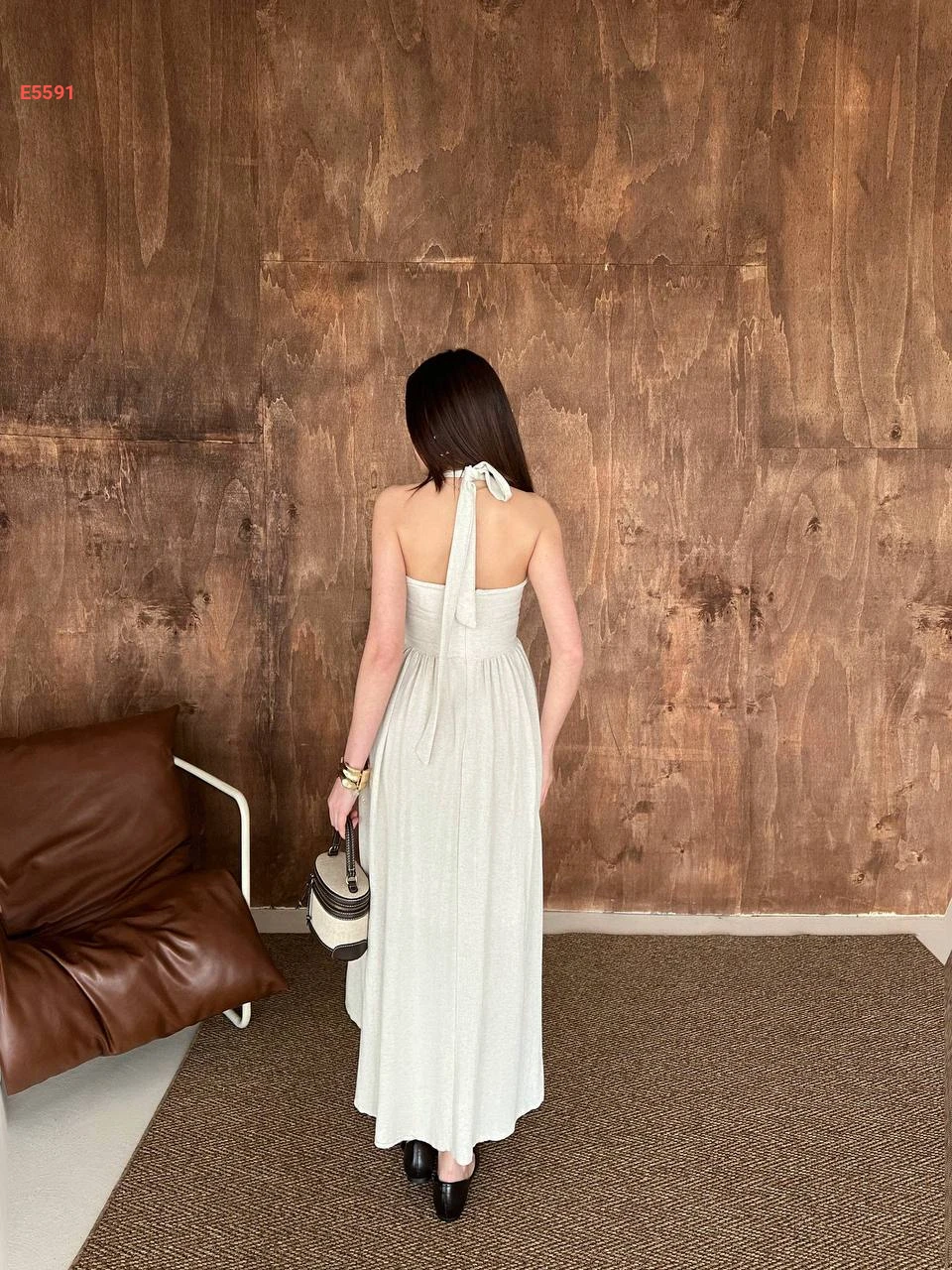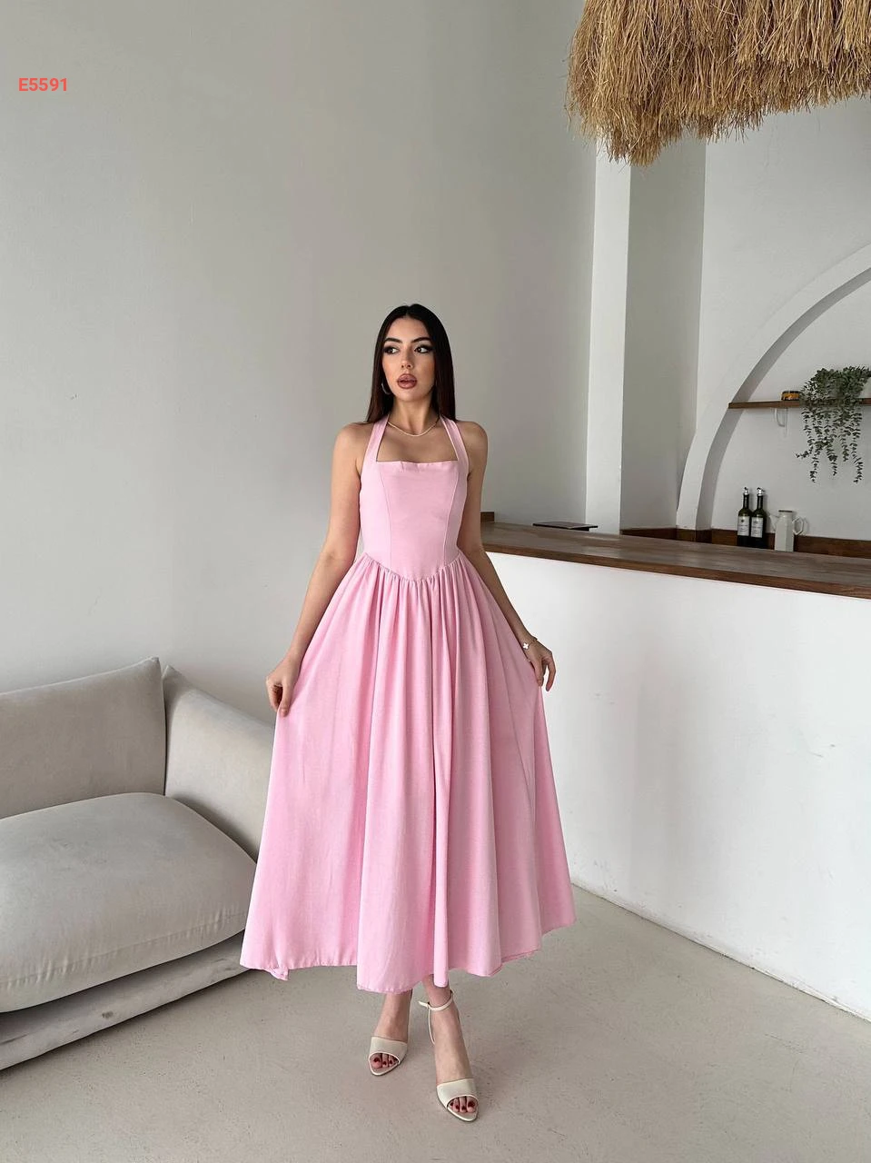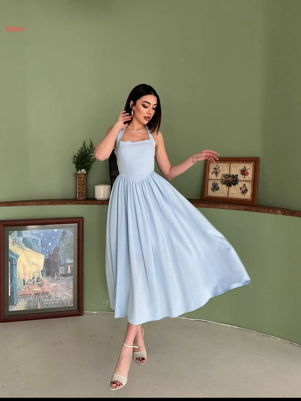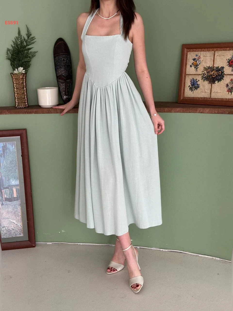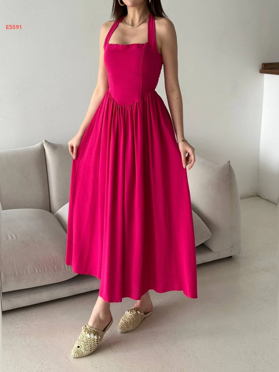 فستان طويل كلوش بربطة عالرقبة