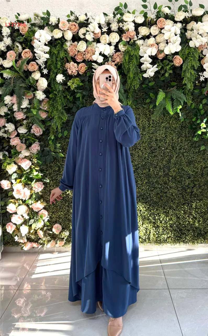 فستان طويل كلوش بأزرار