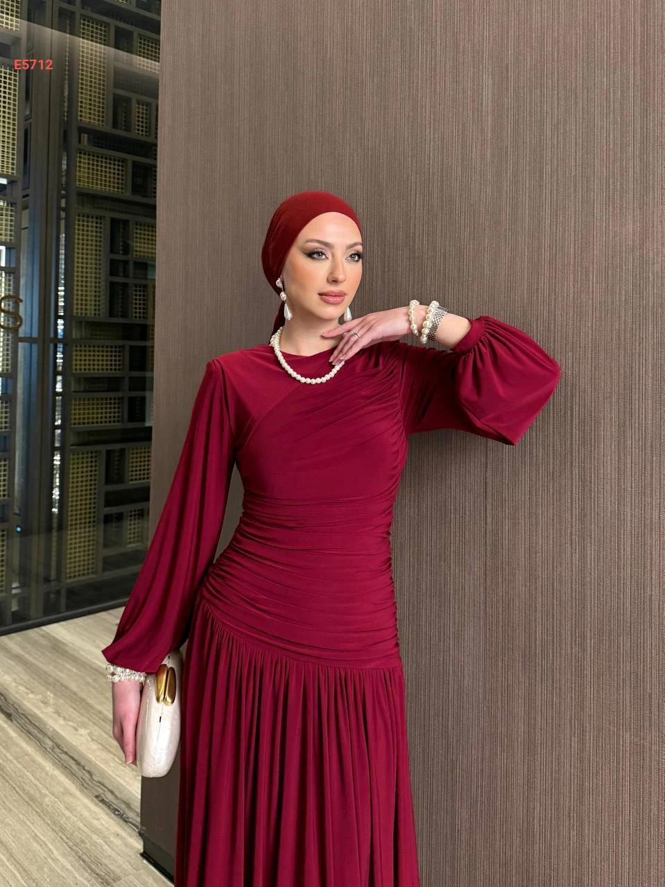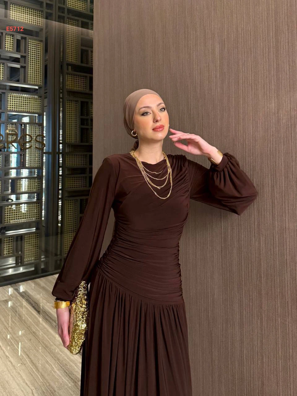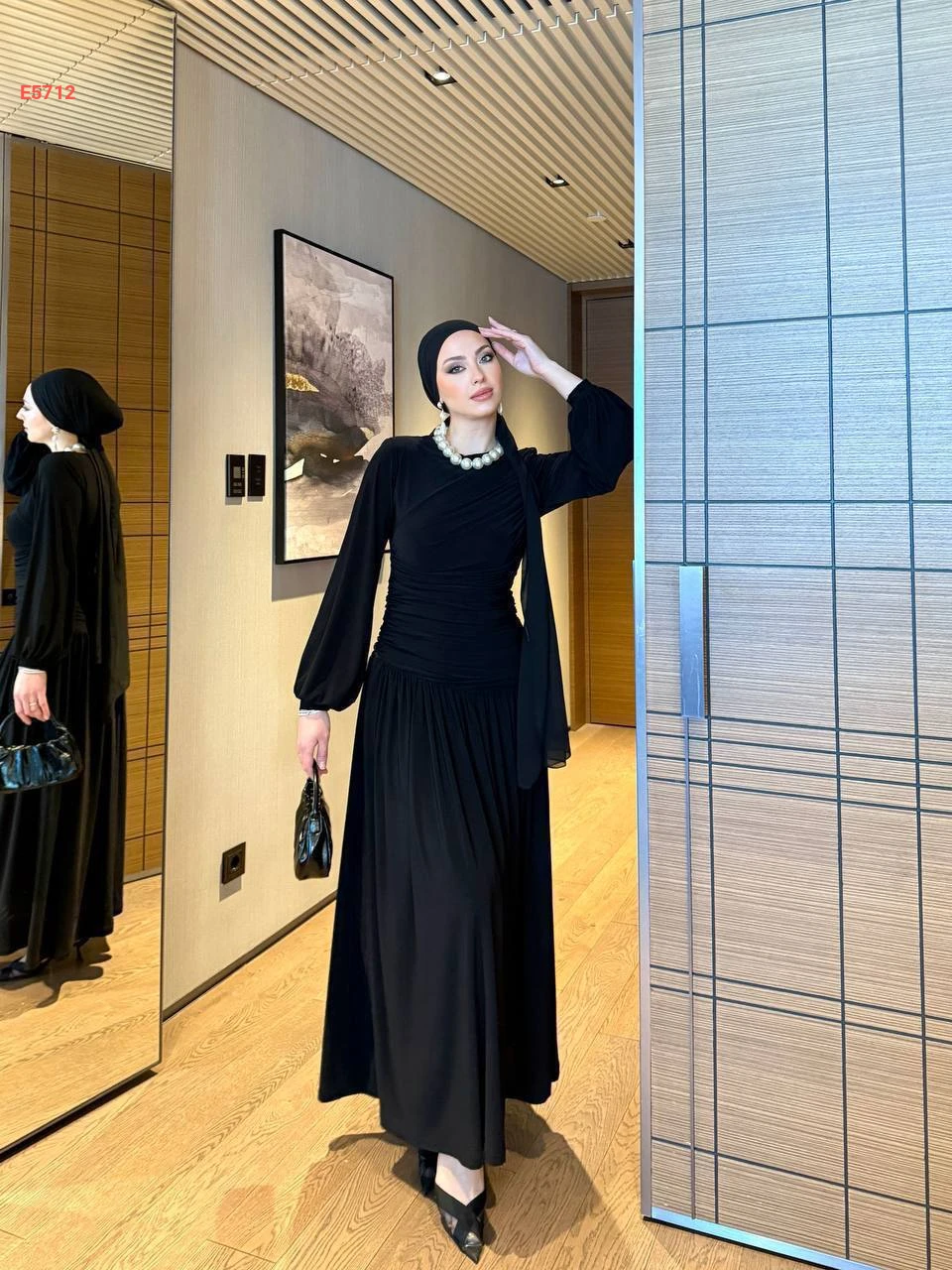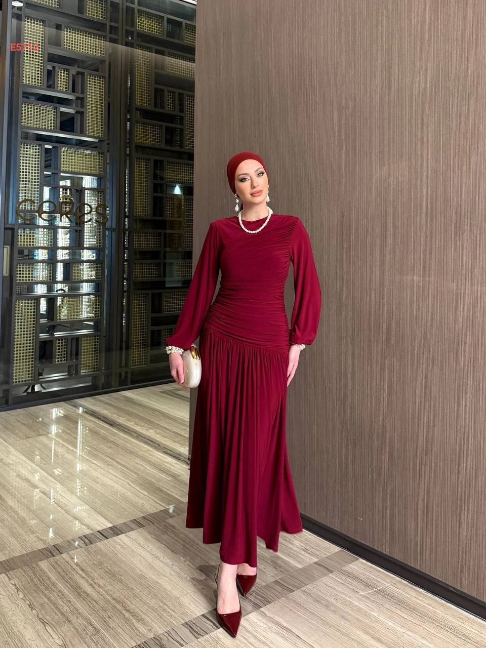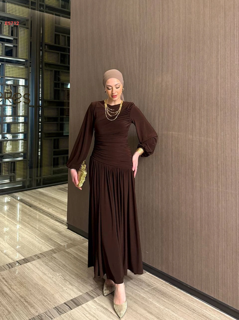 فستان طويل كلوش بتفاصيل مجمعة