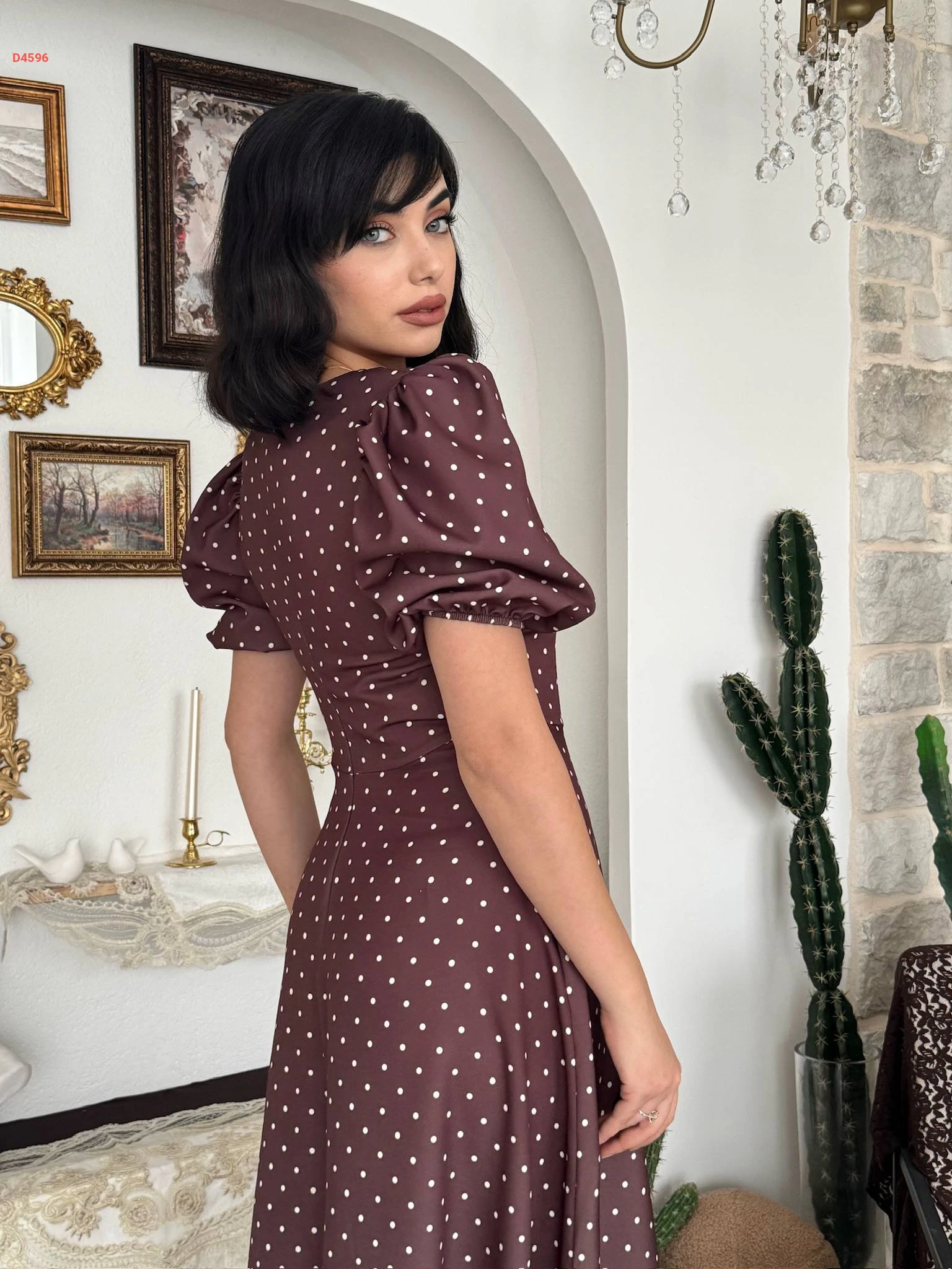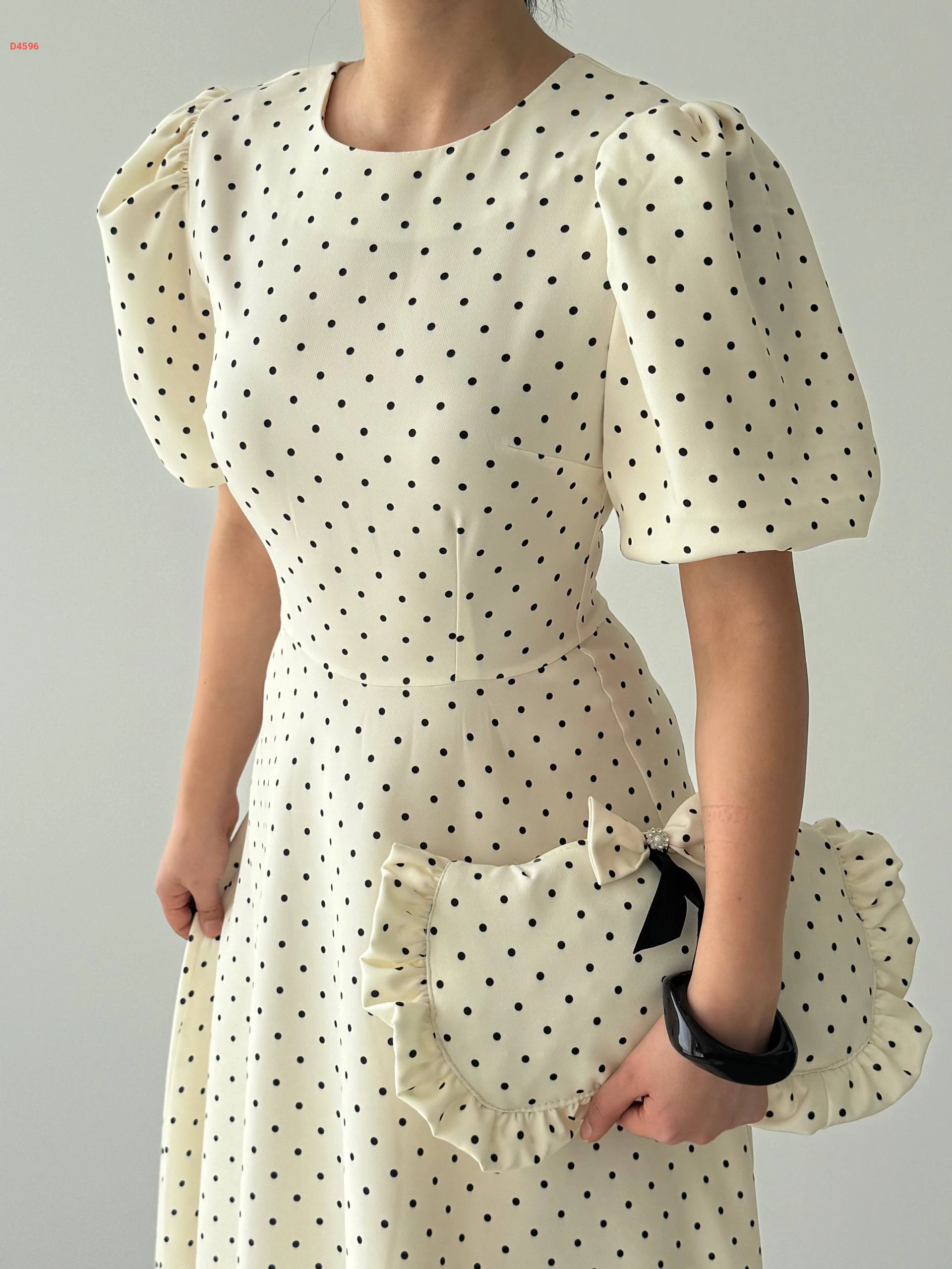 فستان طويل كلوش منقط بأكمام قصيرة