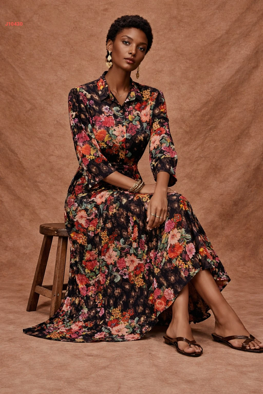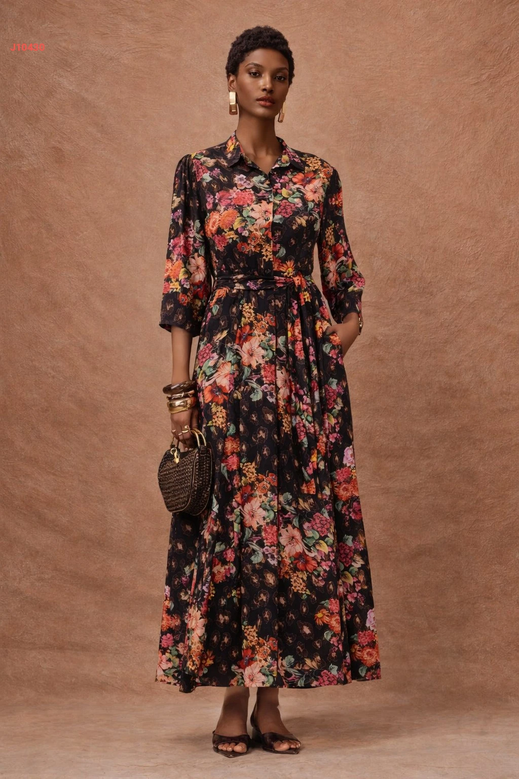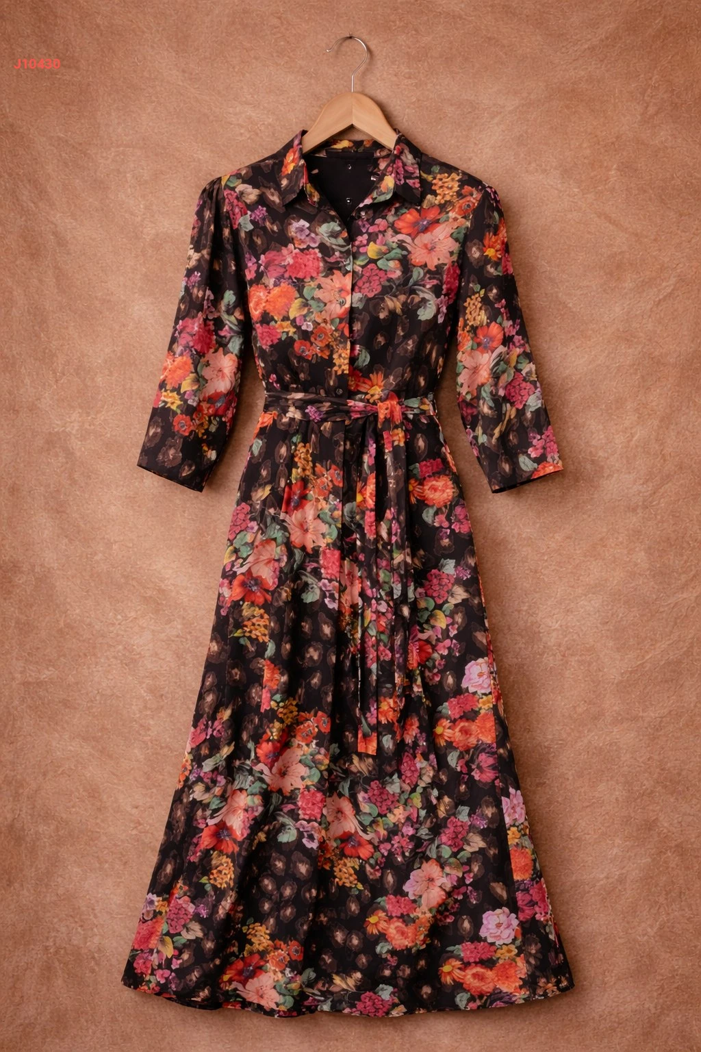 فستان طويل مورد بأزرار