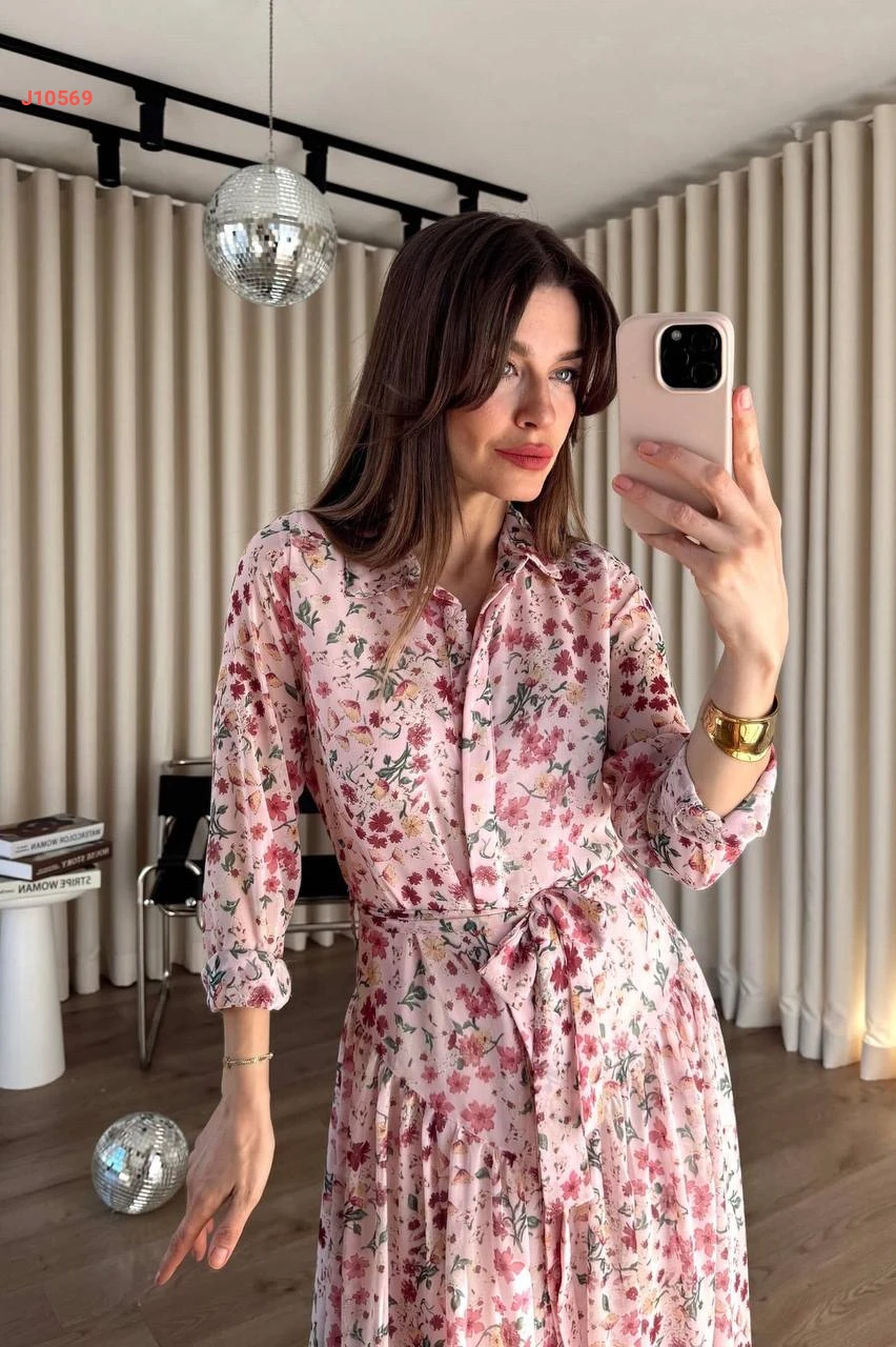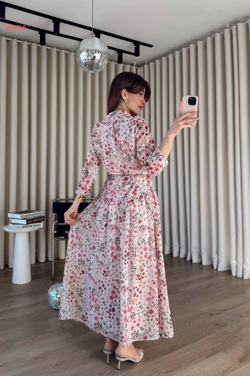 فستان طويل مورد بأزرار