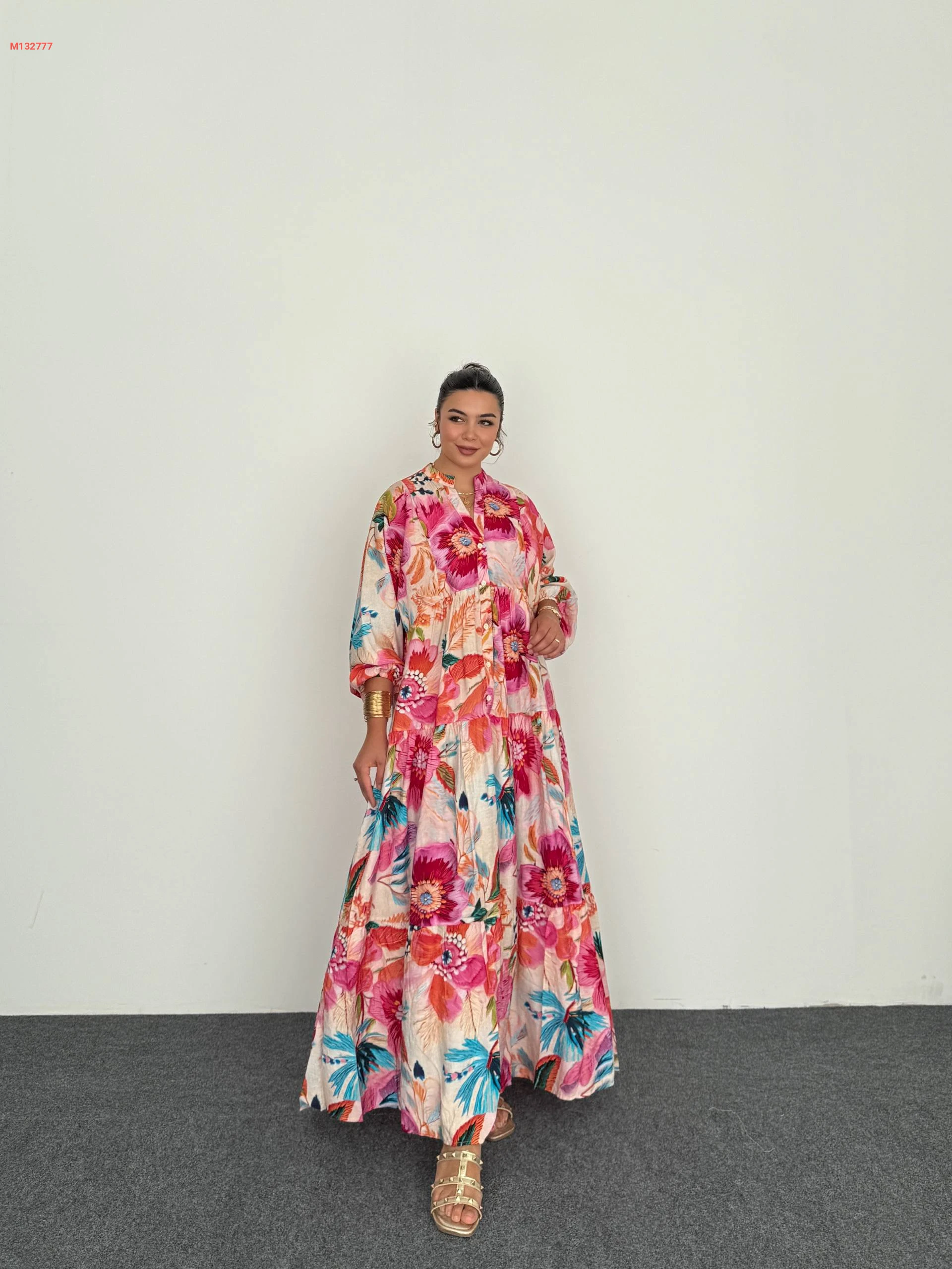 فستان طويل منقوش ورد