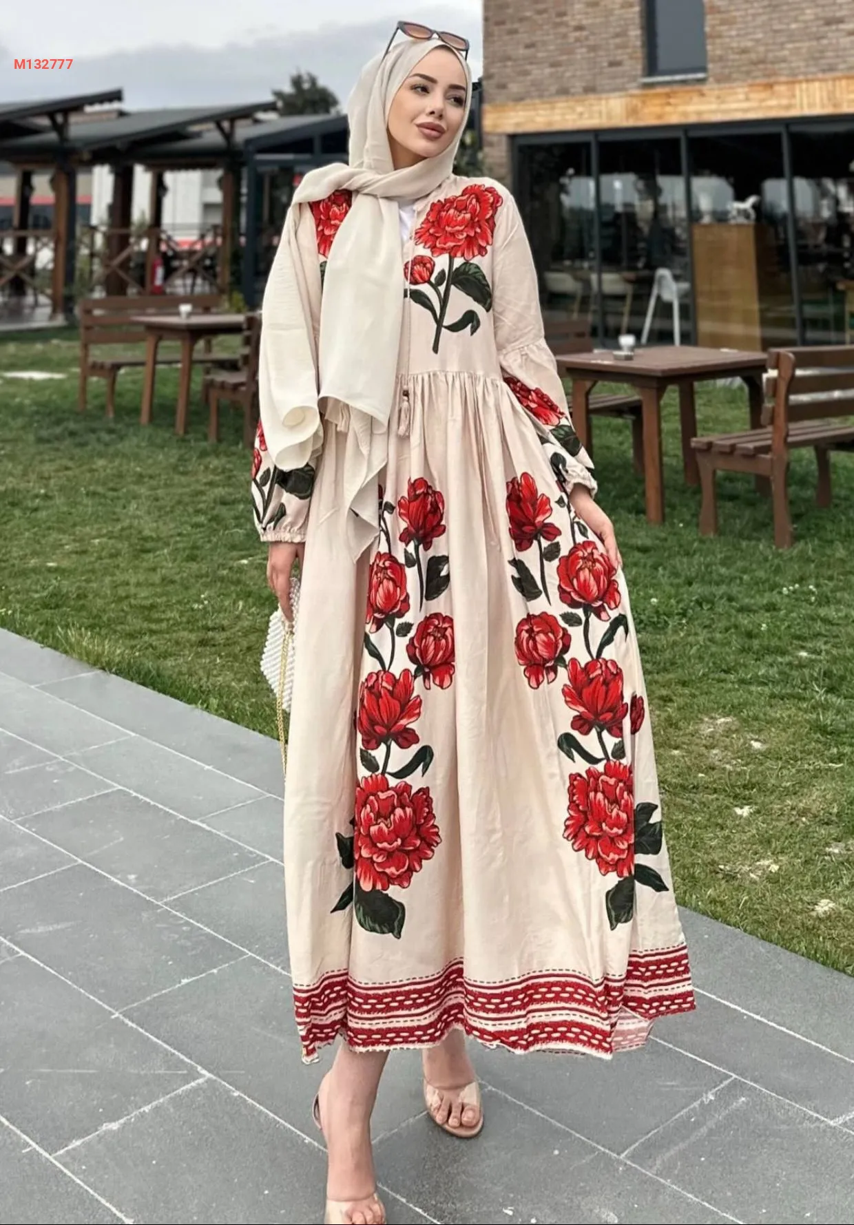 فستان طويل فيزكون منقوش ورد