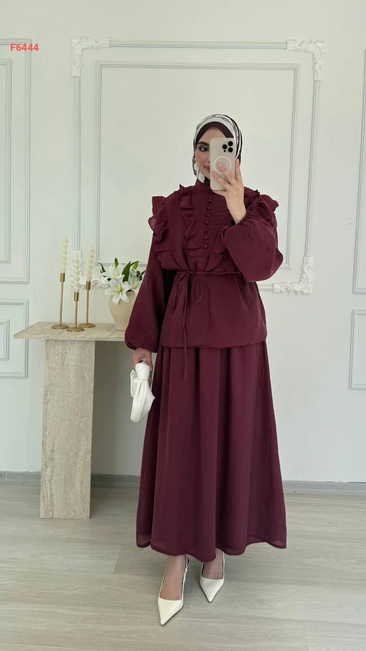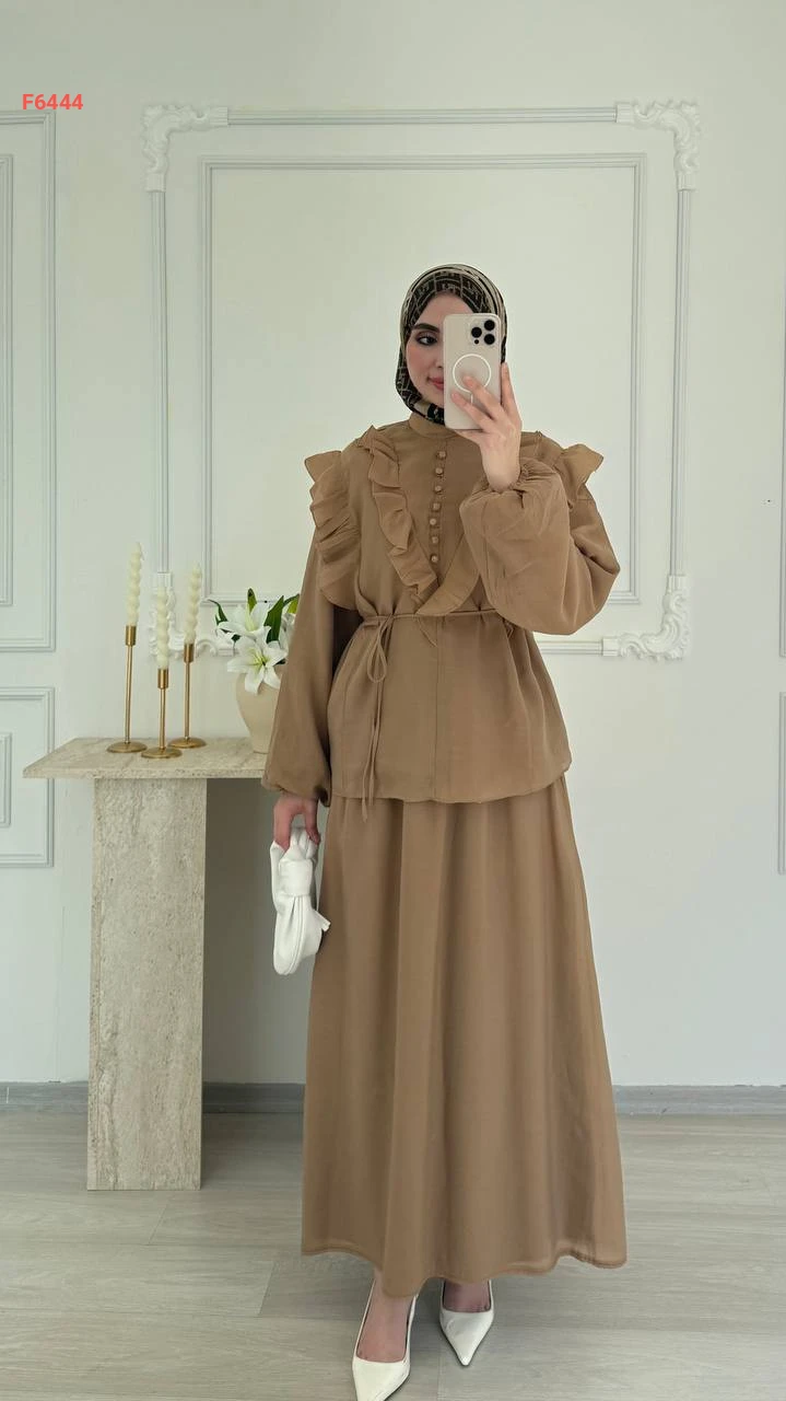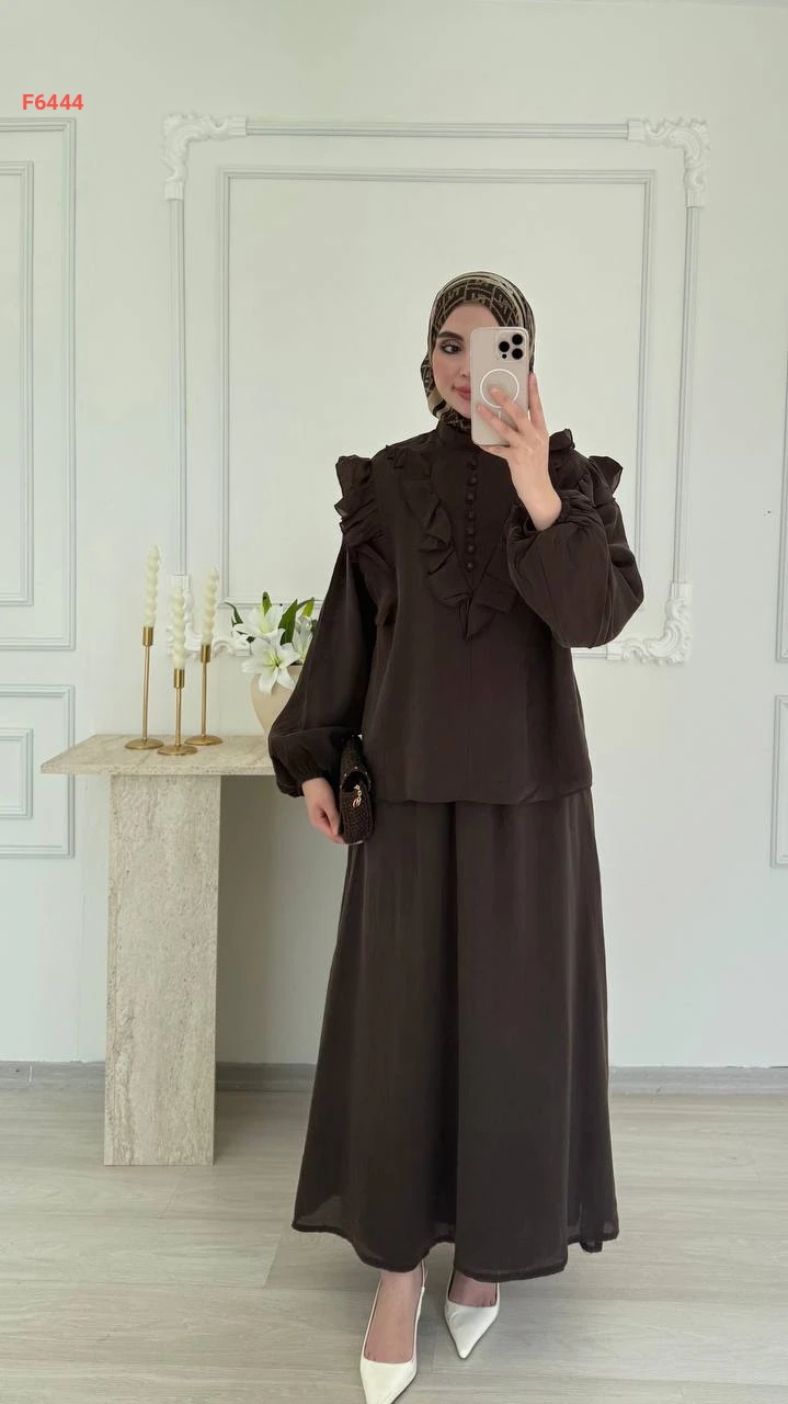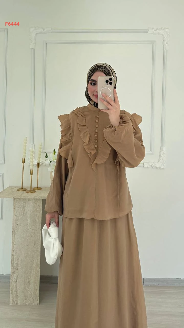 طقم تنورة طويل فوال مع بلوزة