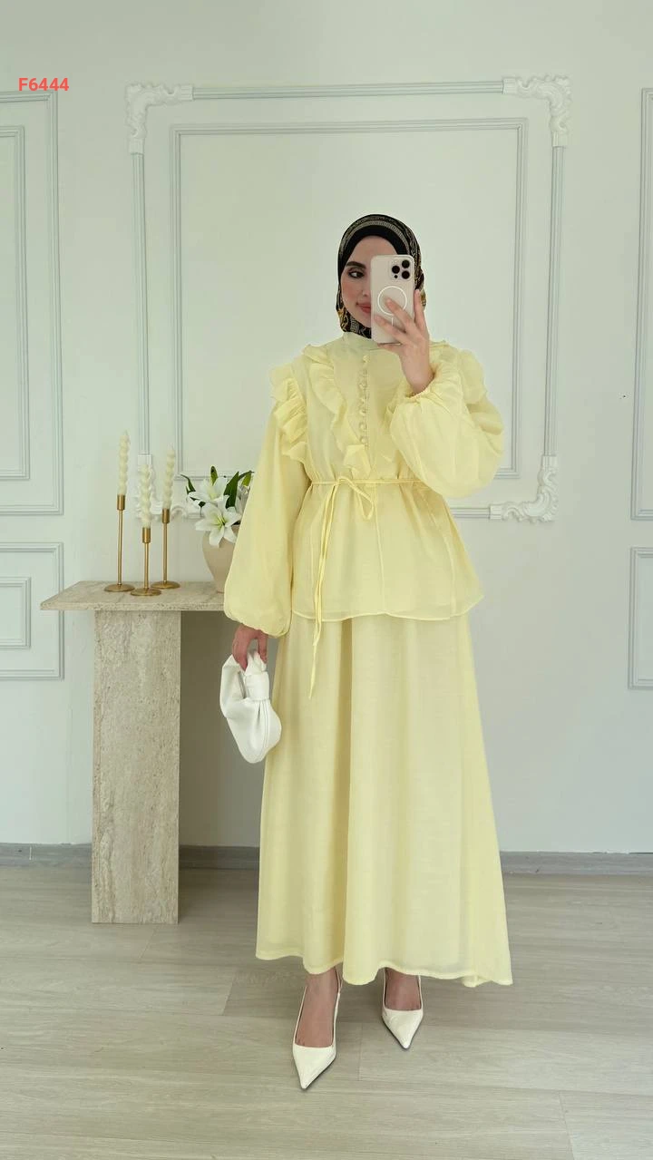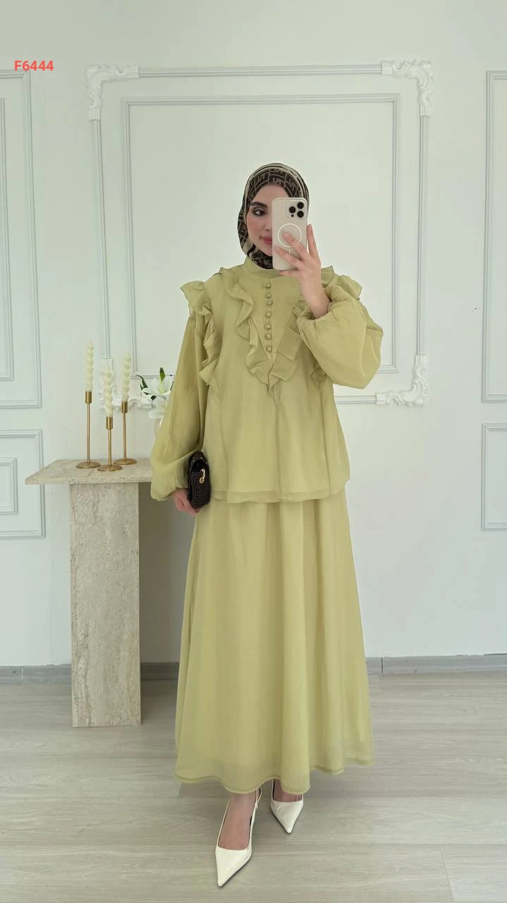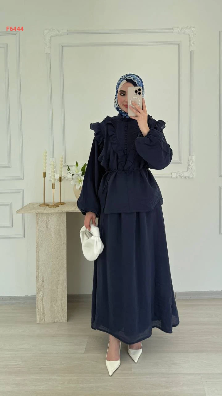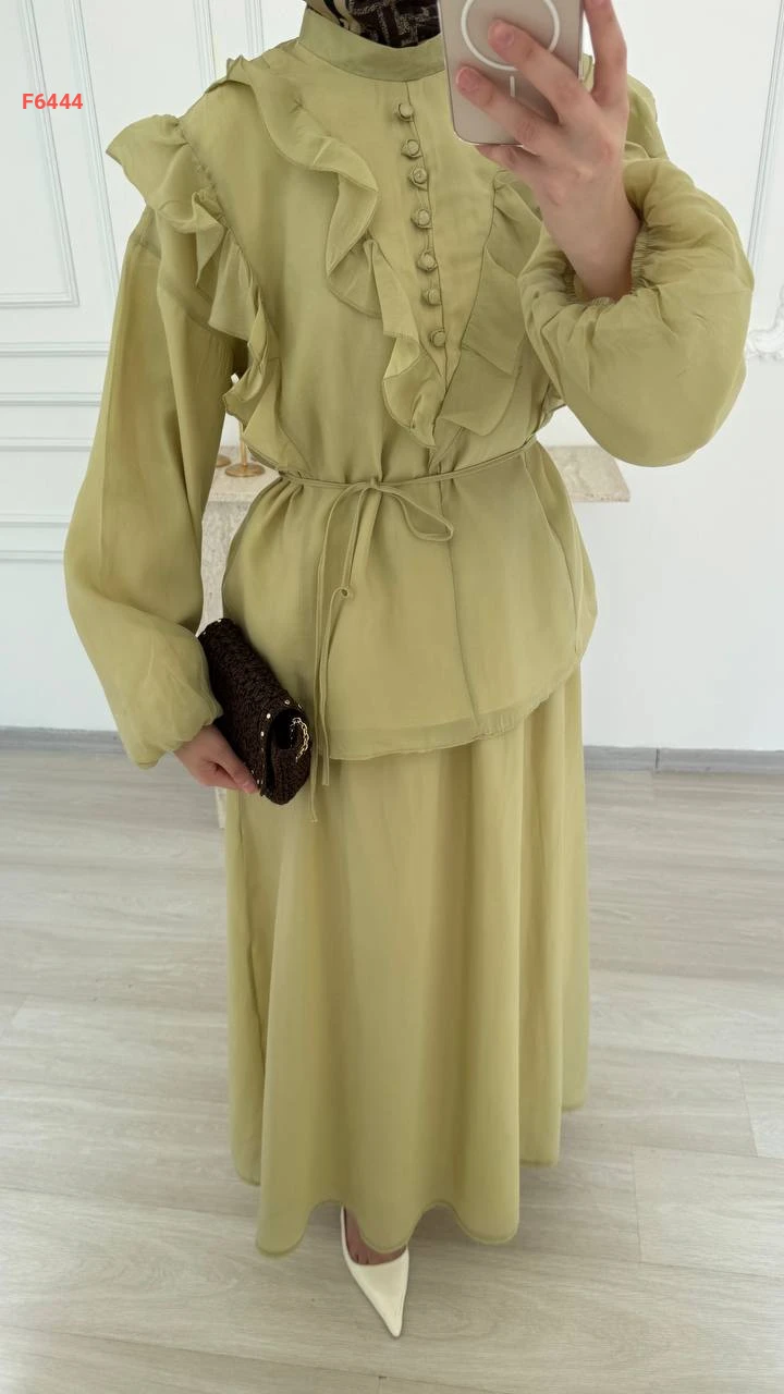 طقم تنورة طويل فوال مع بلوزة