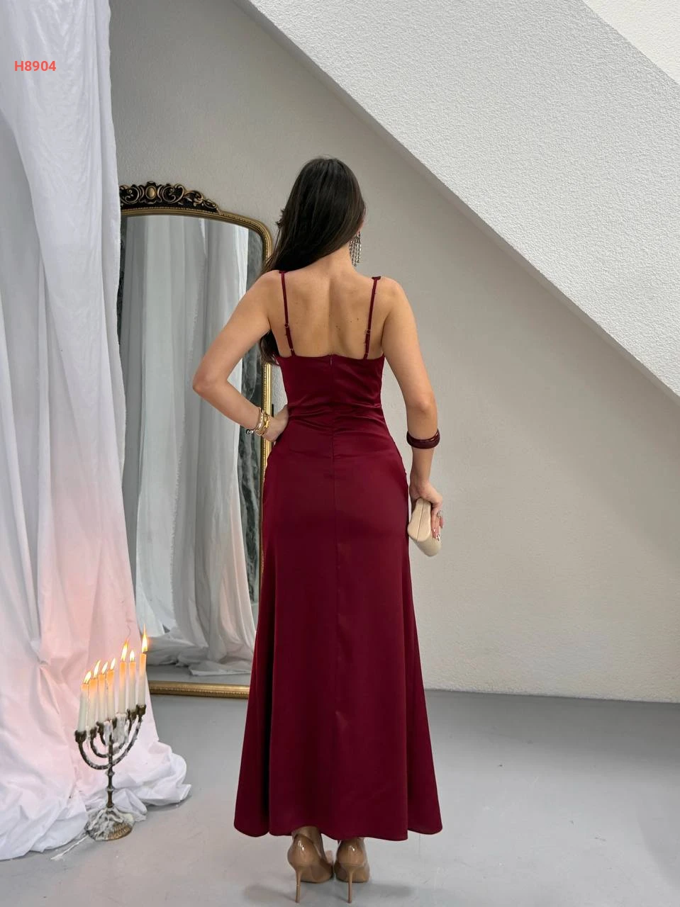 فستان ساتان طويل مجمع