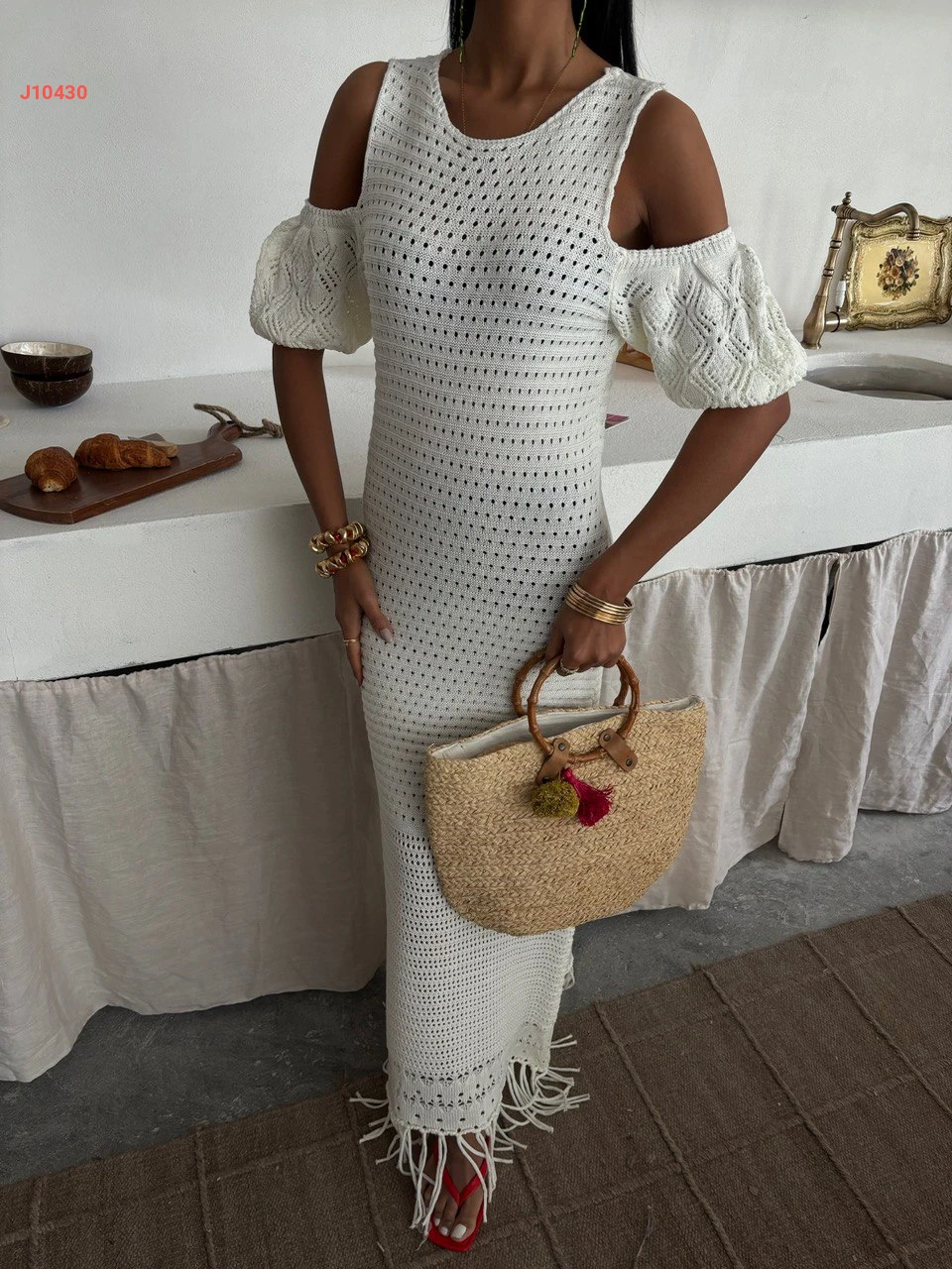فستان تريكو طويل مفرغ