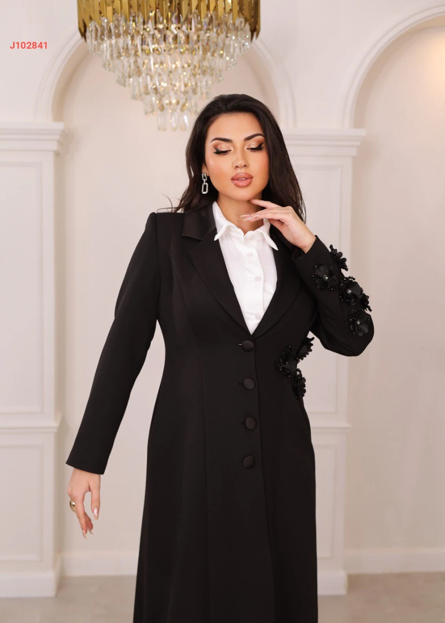 جاكيت طويل مزين ورد