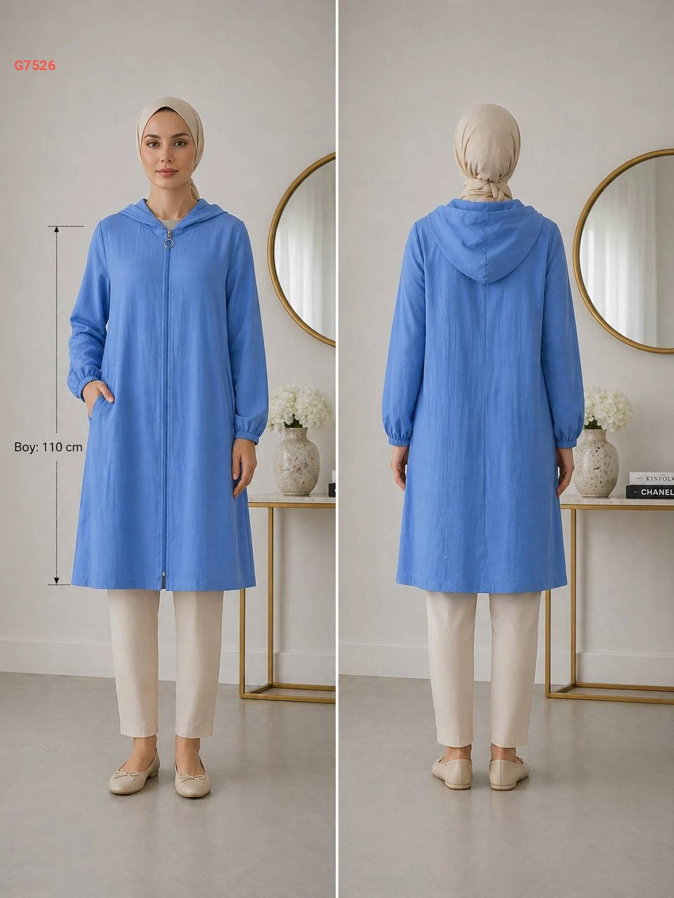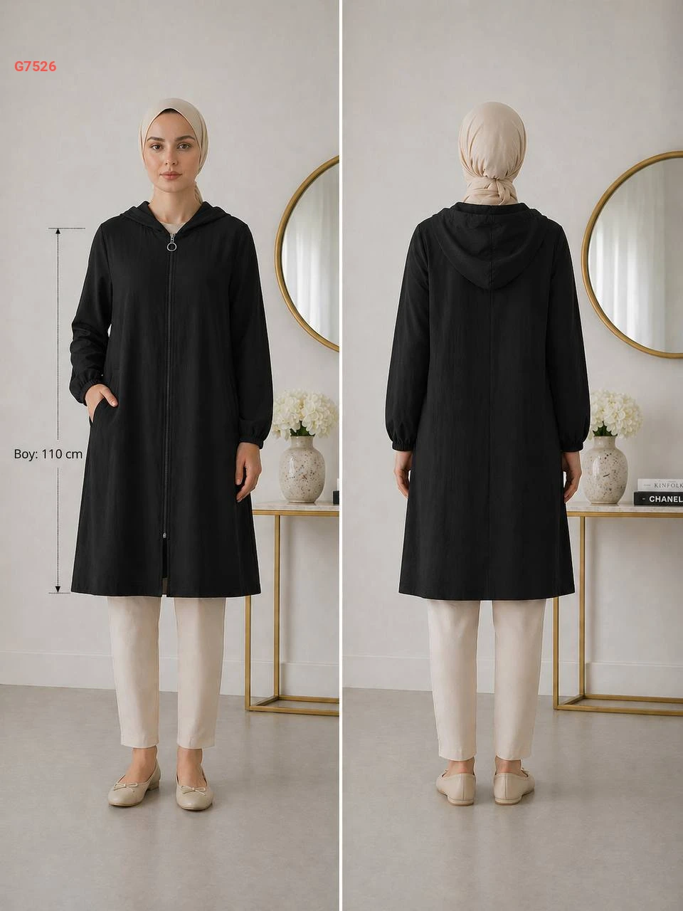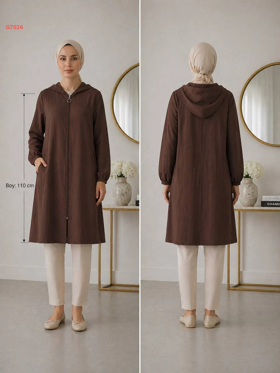جاكيت طويل بسحاب وطاقية