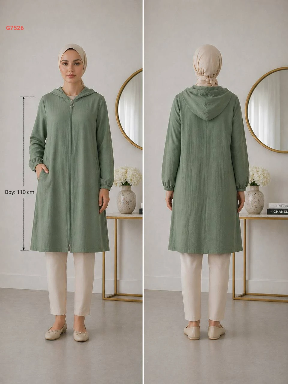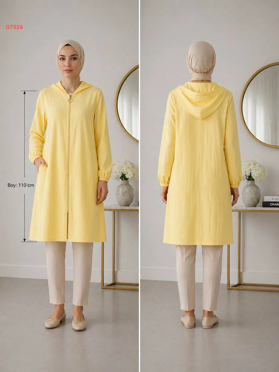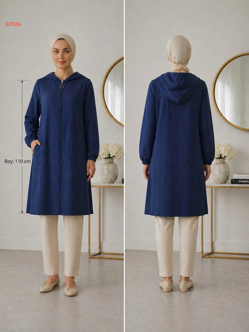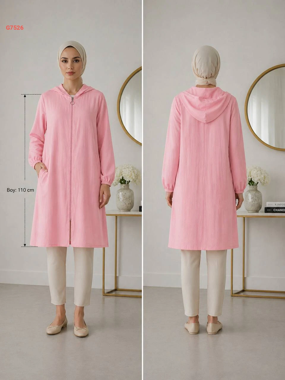 جاكيت طويل بسحاب وطاقية