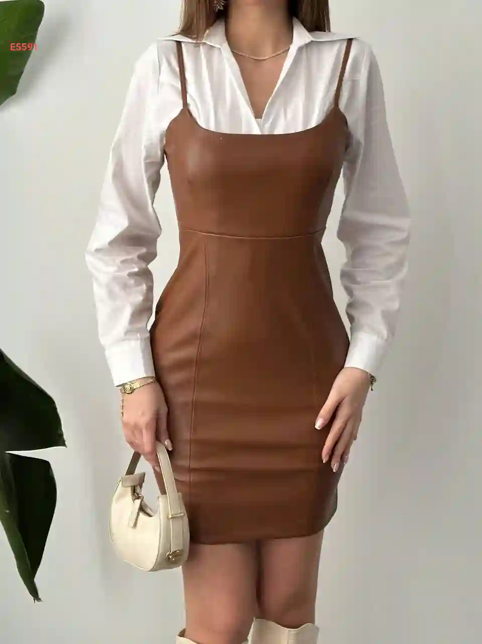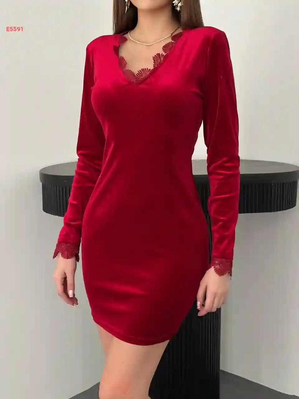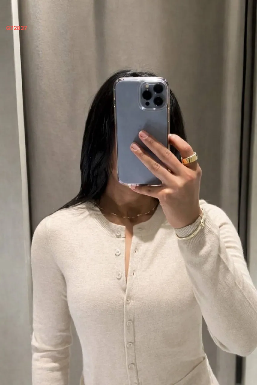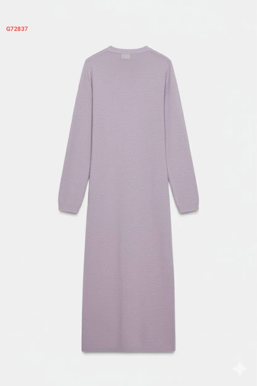 فستان تريكو طويل سادة بأزرار وربطة خصر