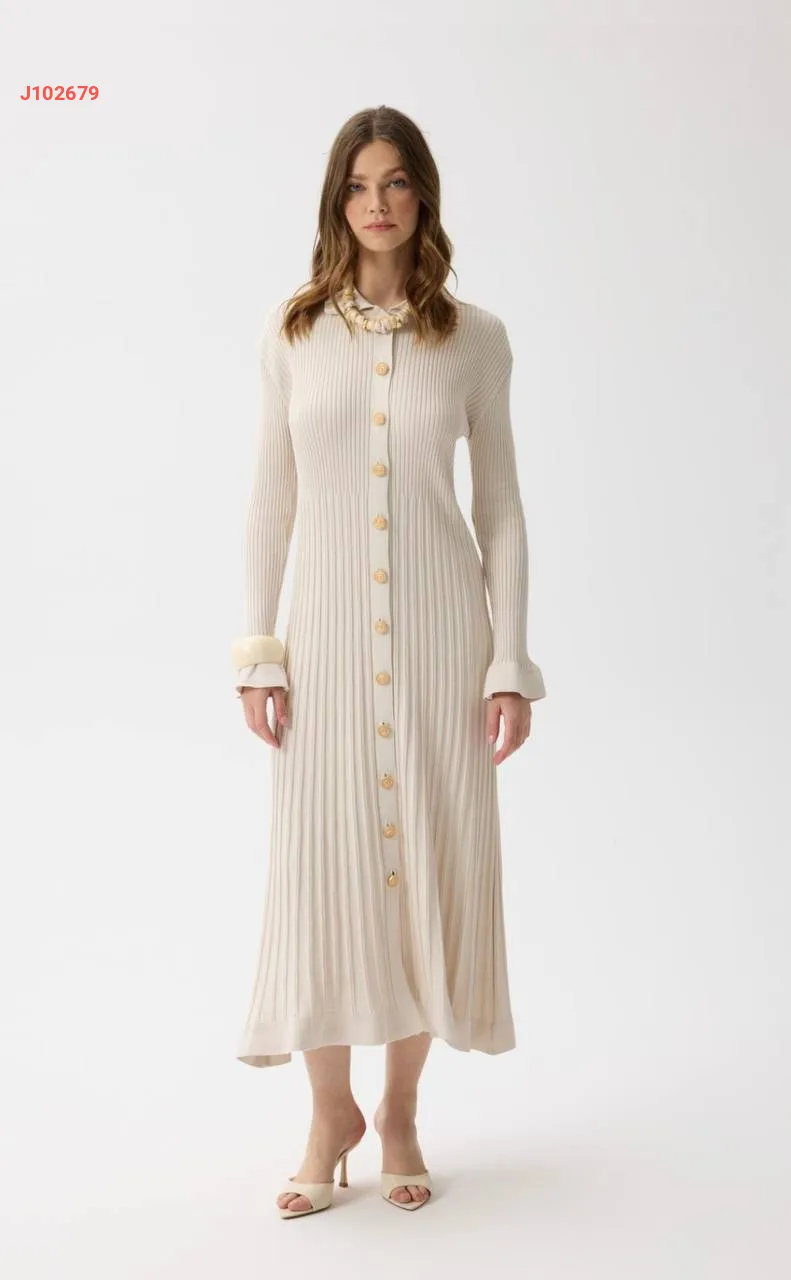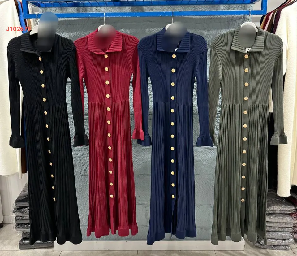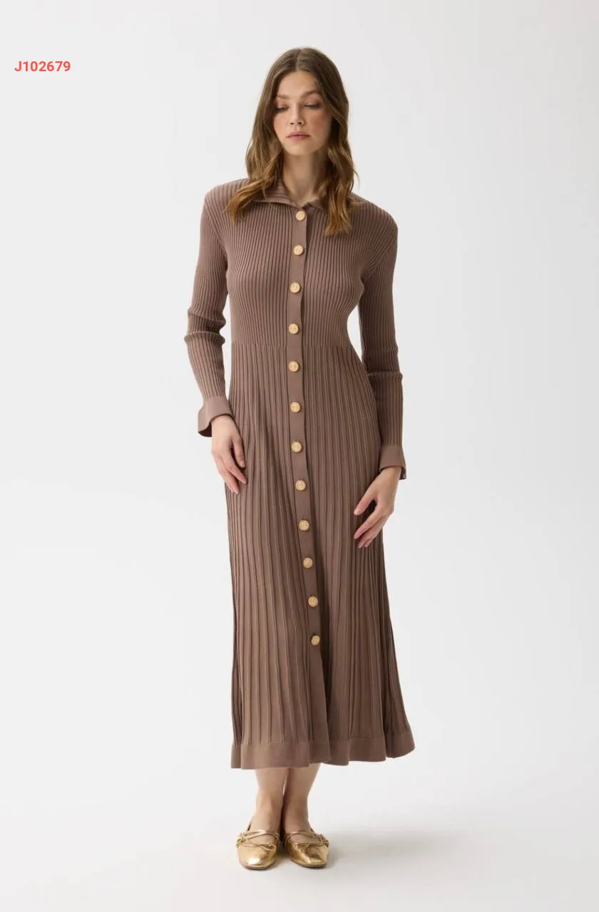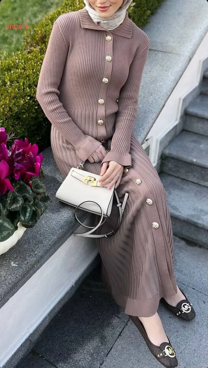 فستان تريكو طويل بأزرار