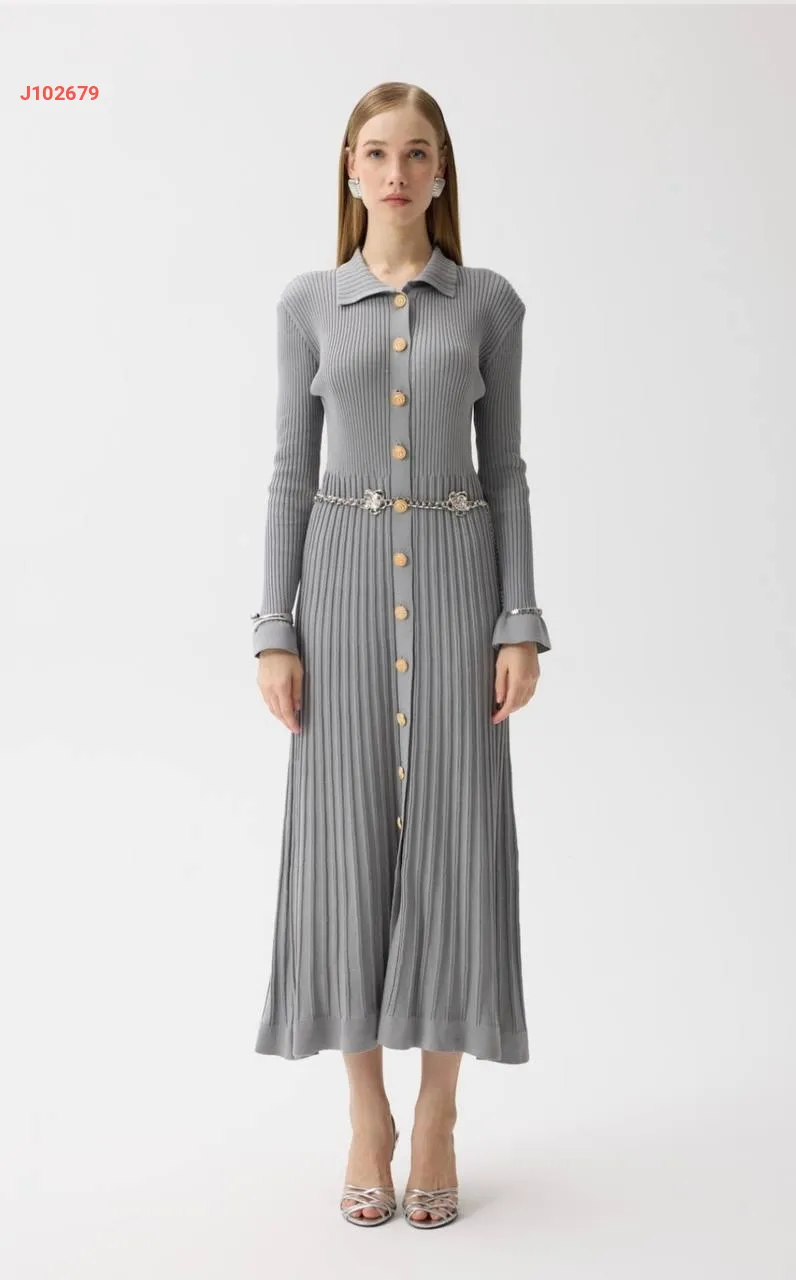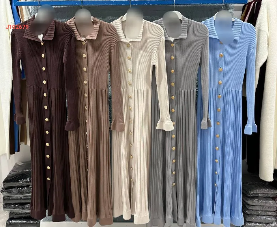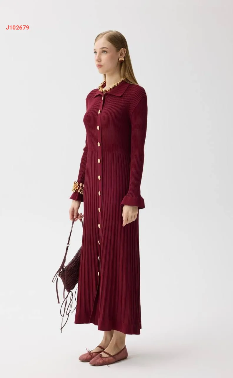 فستان تريكو طويل بأزرار
