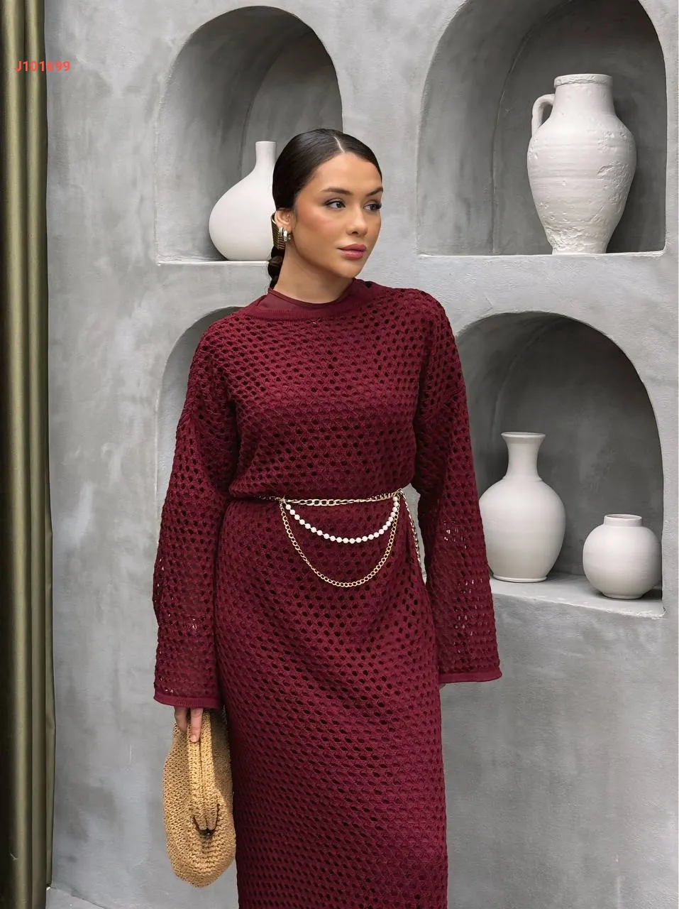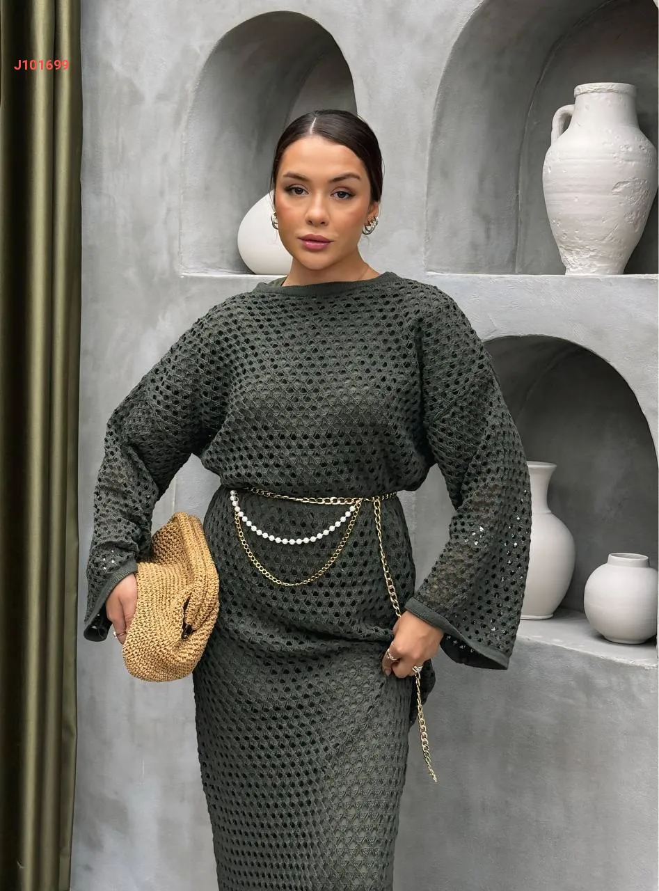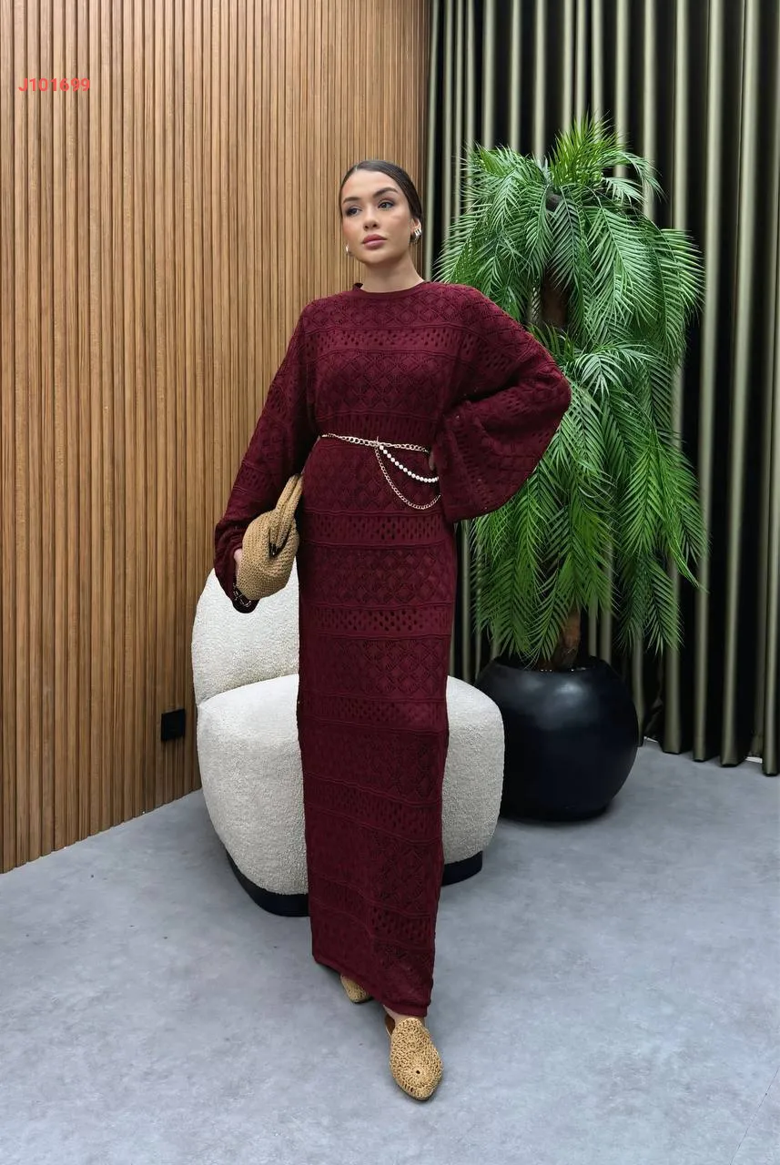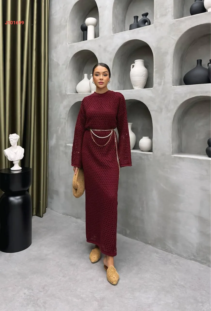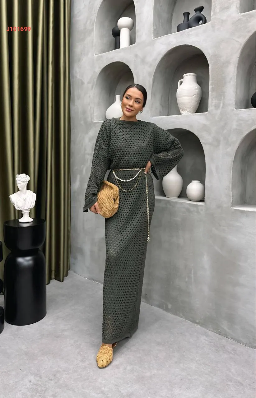فستان تريكو طويل بتفاصيل مفرغة