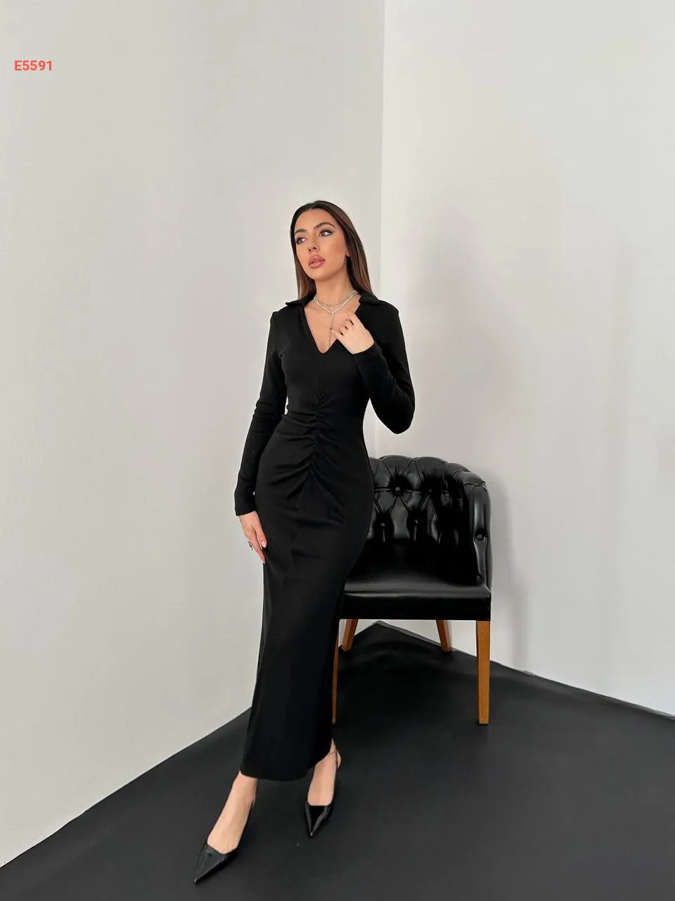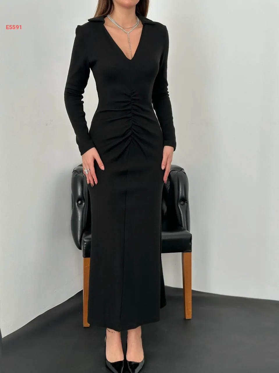 فستان تريكو طويل قبة v