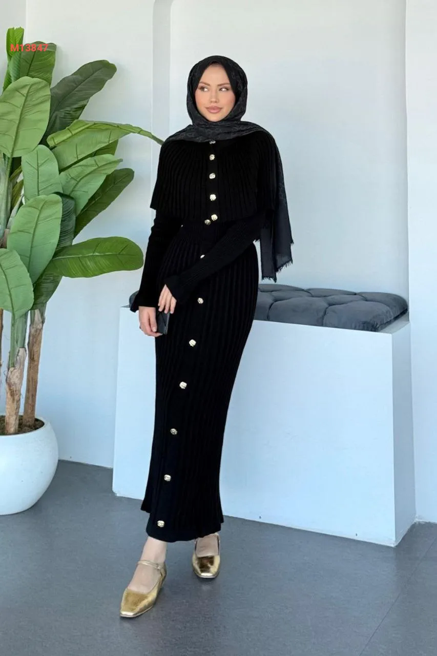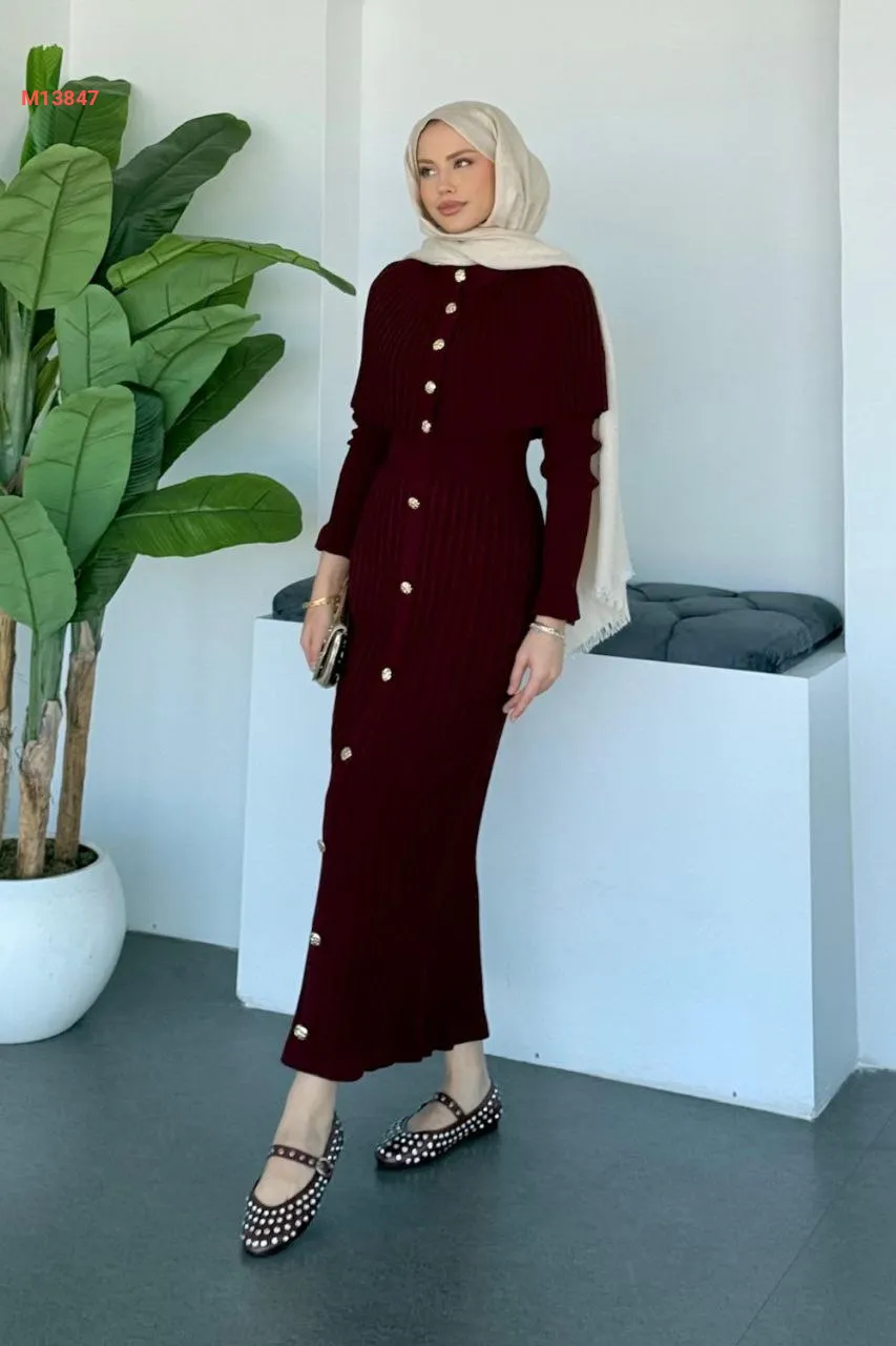 فستان تريكو طويل بأزرار