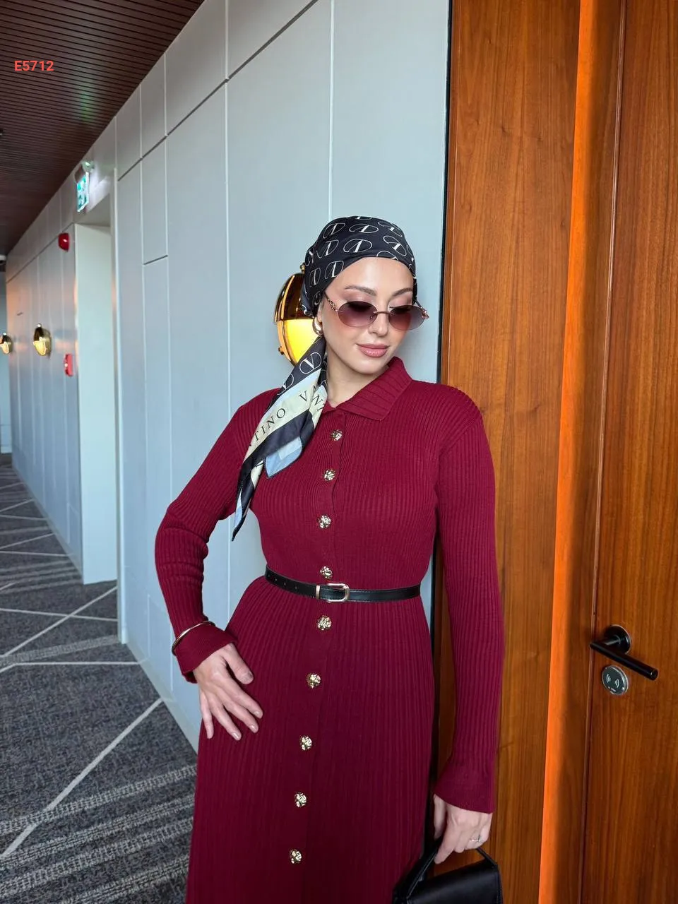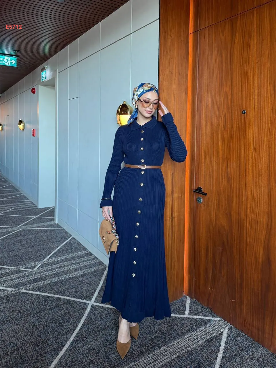 فستان تريكو طويل بأزرار