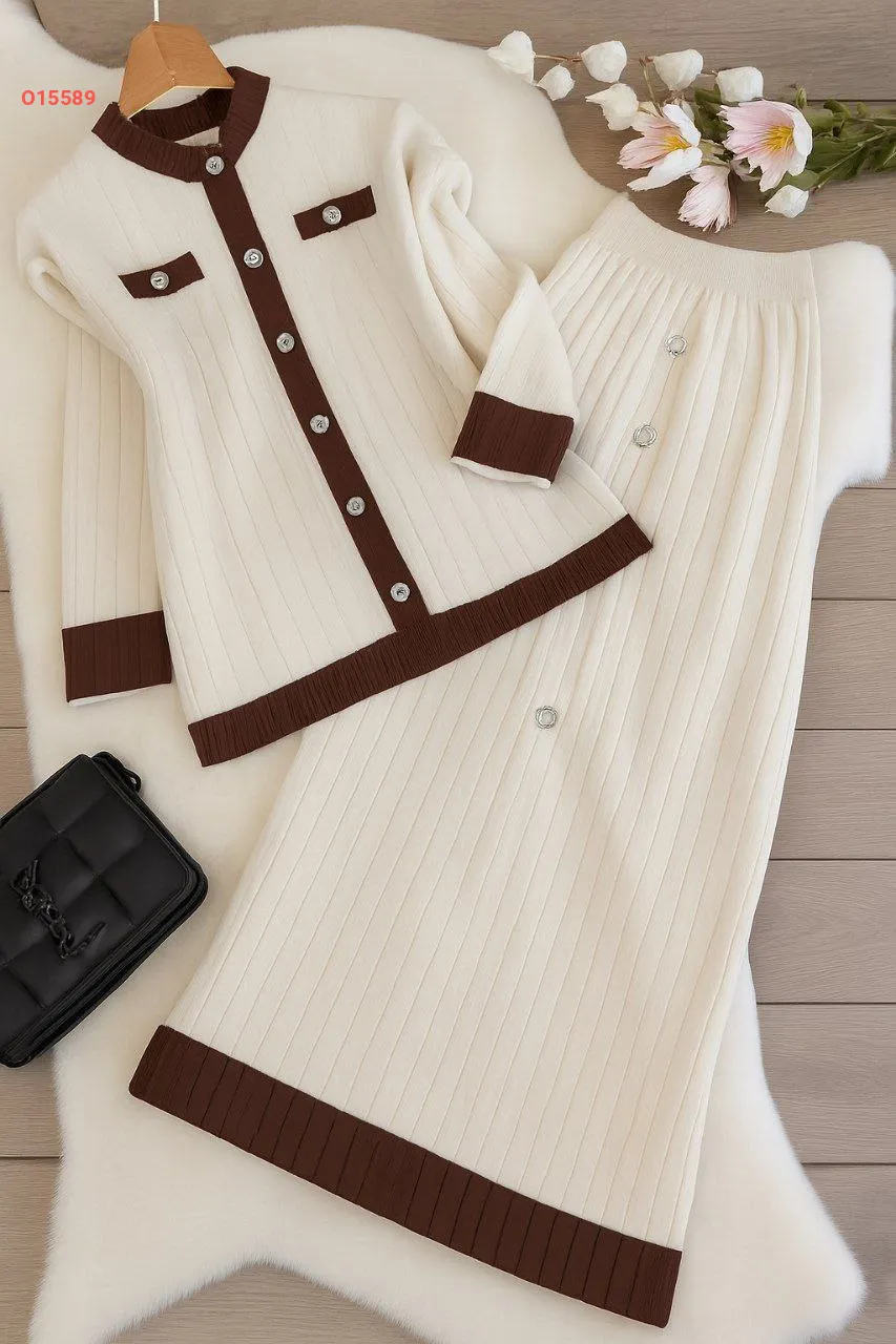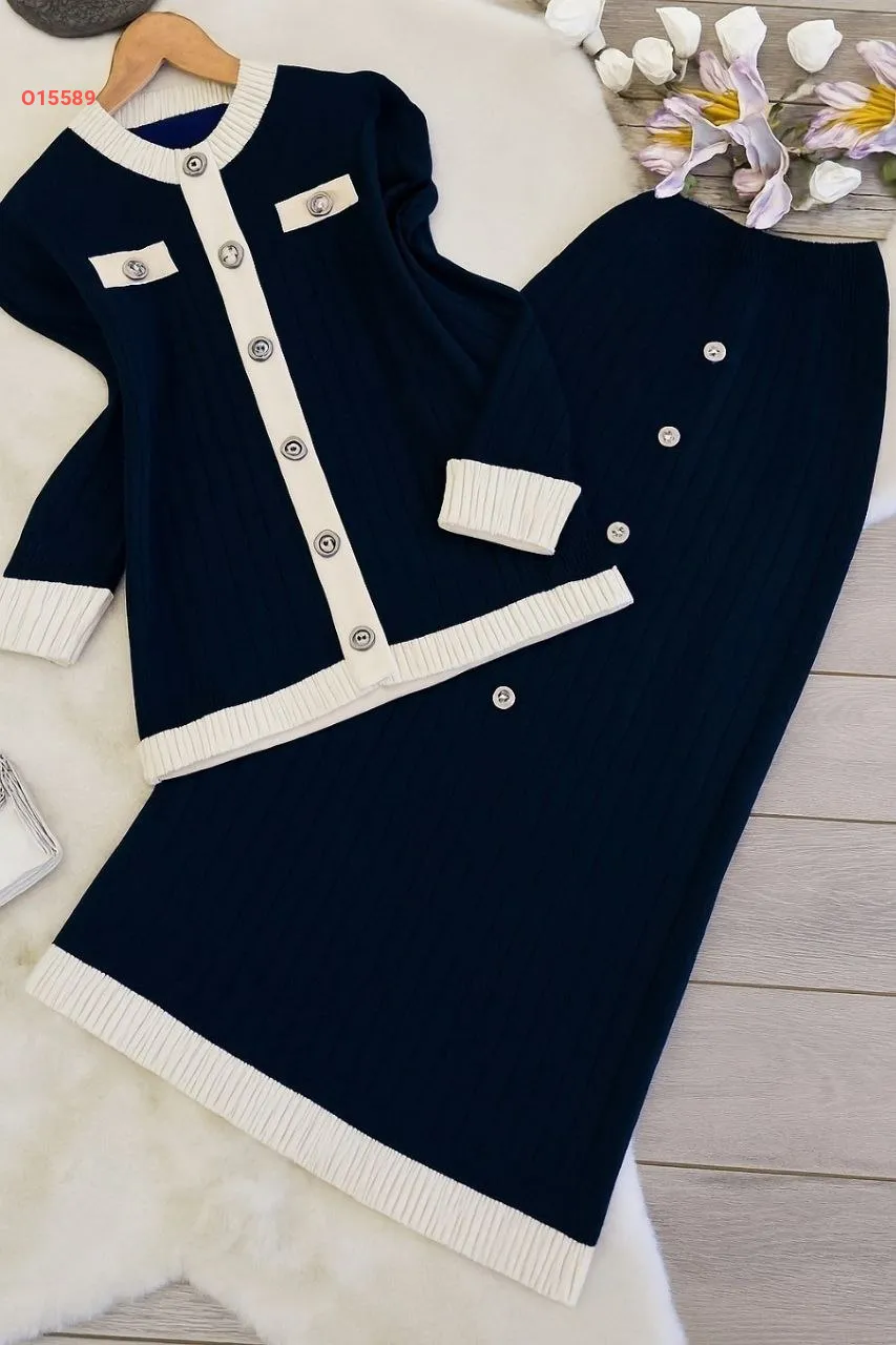 طقم تنورة تريكو طويل