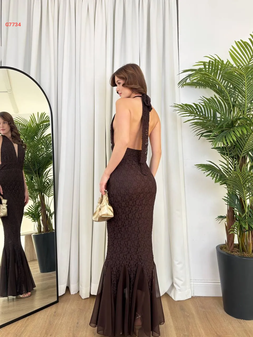 فستان طويل دانتيل وشيفون بظهر مكشوف