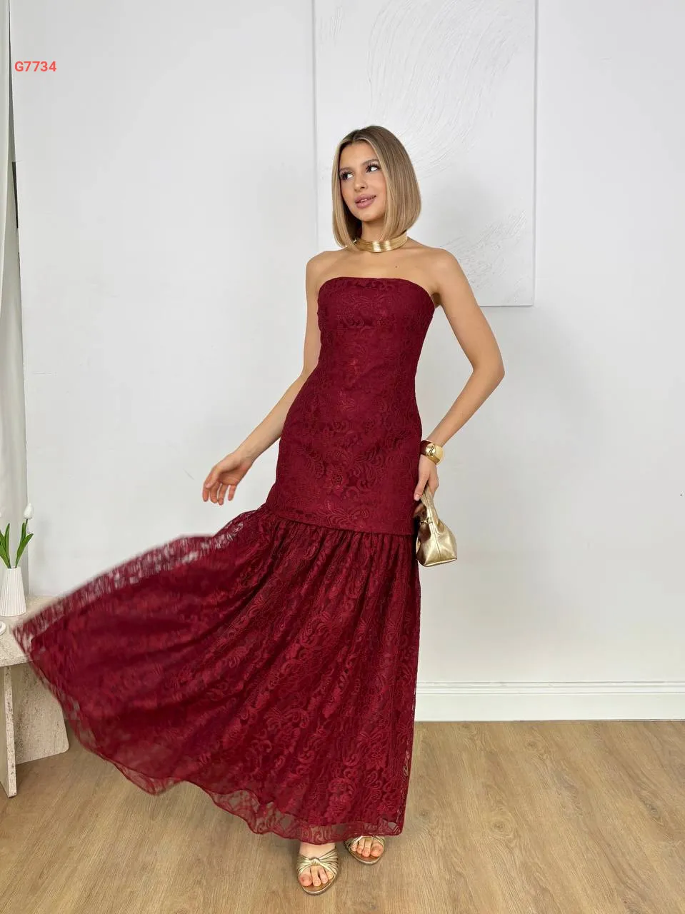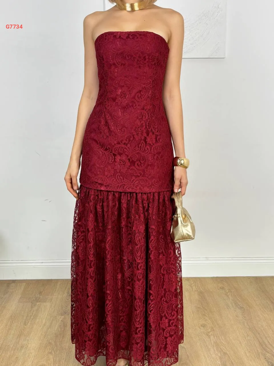 فستان طويل دانتيل cut