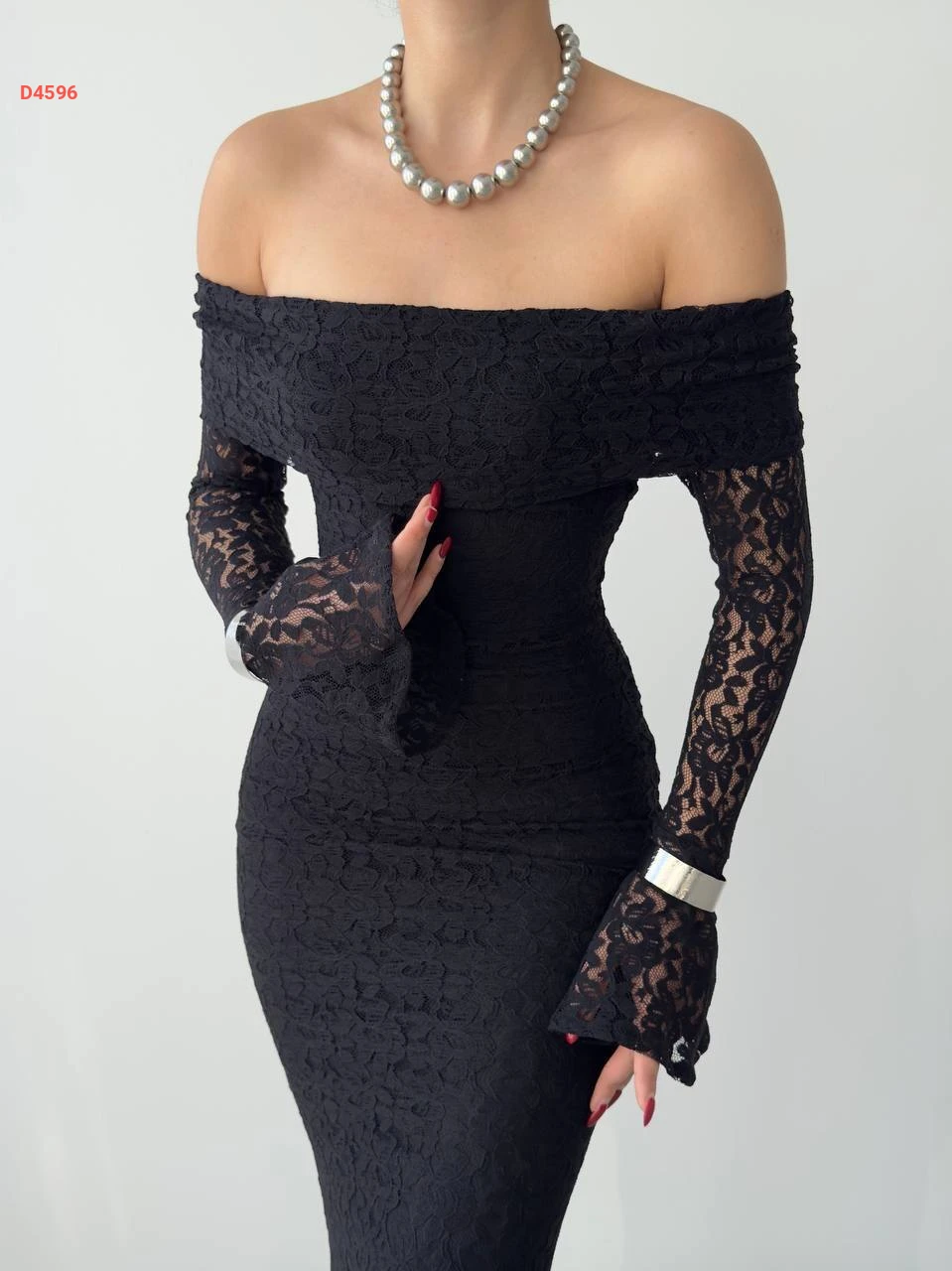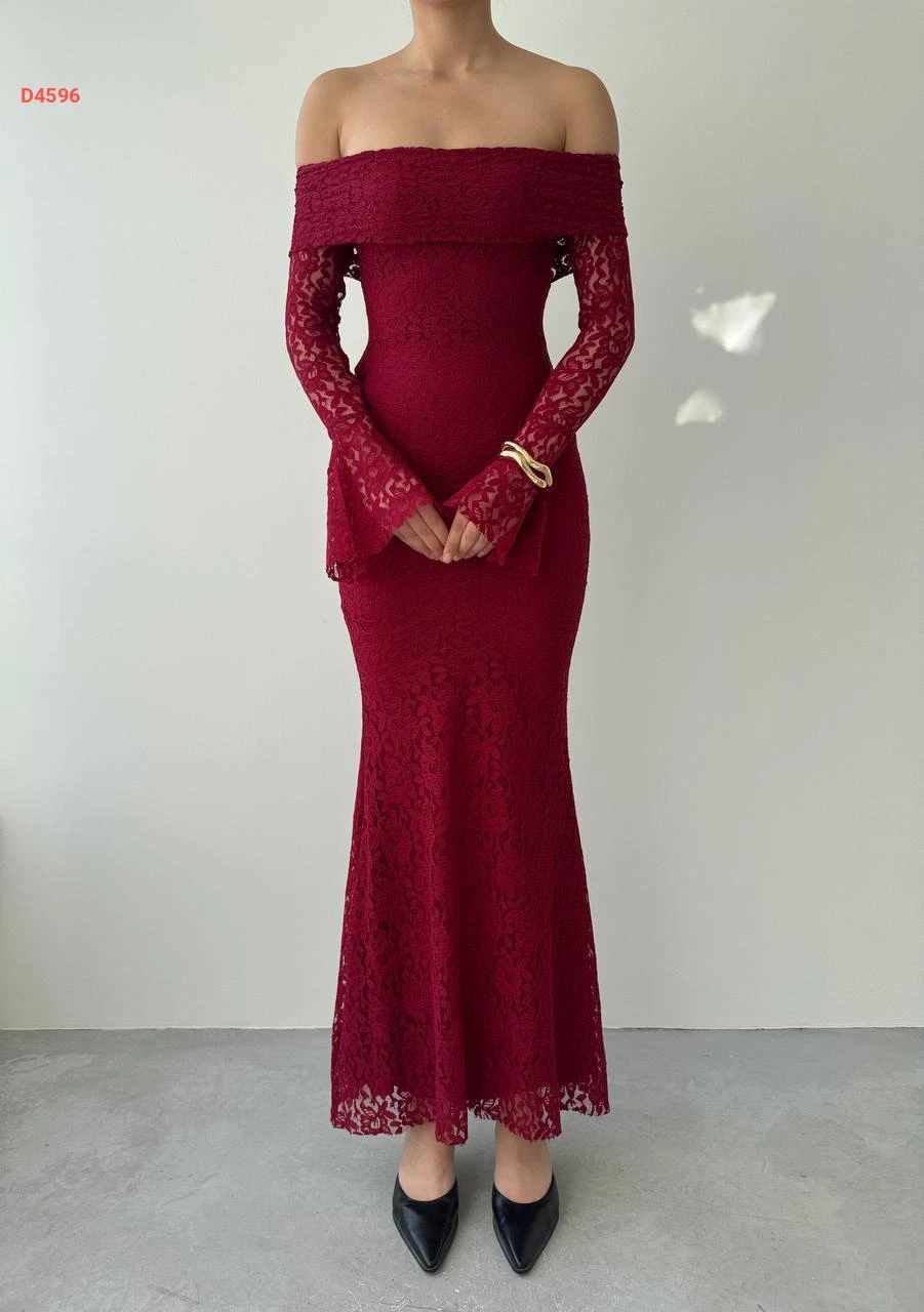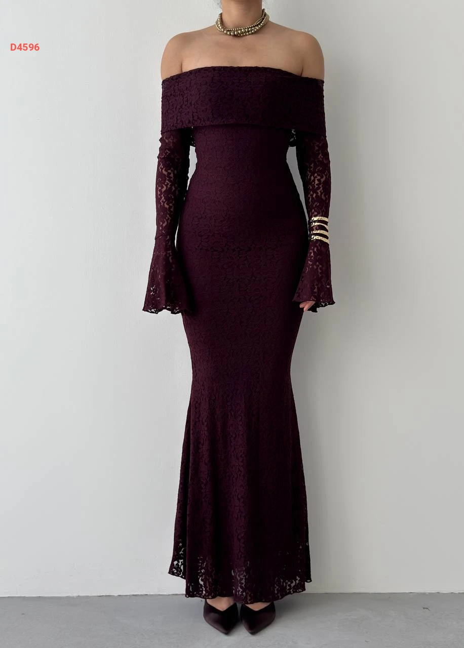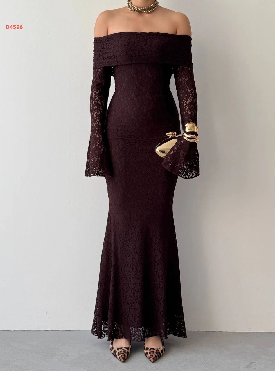 فستان طويل دانتيل بياقة مادونا