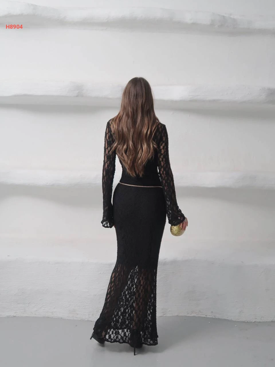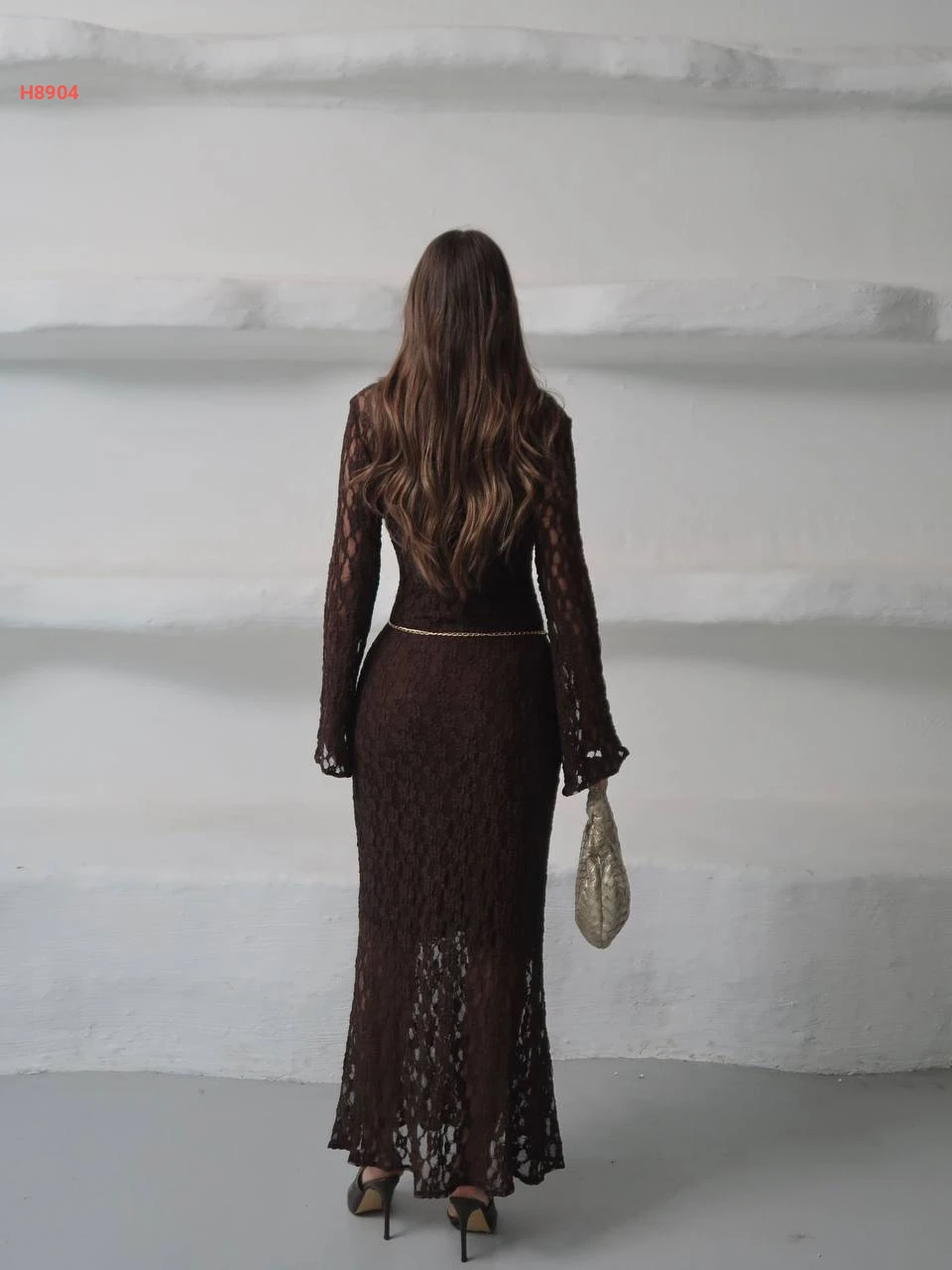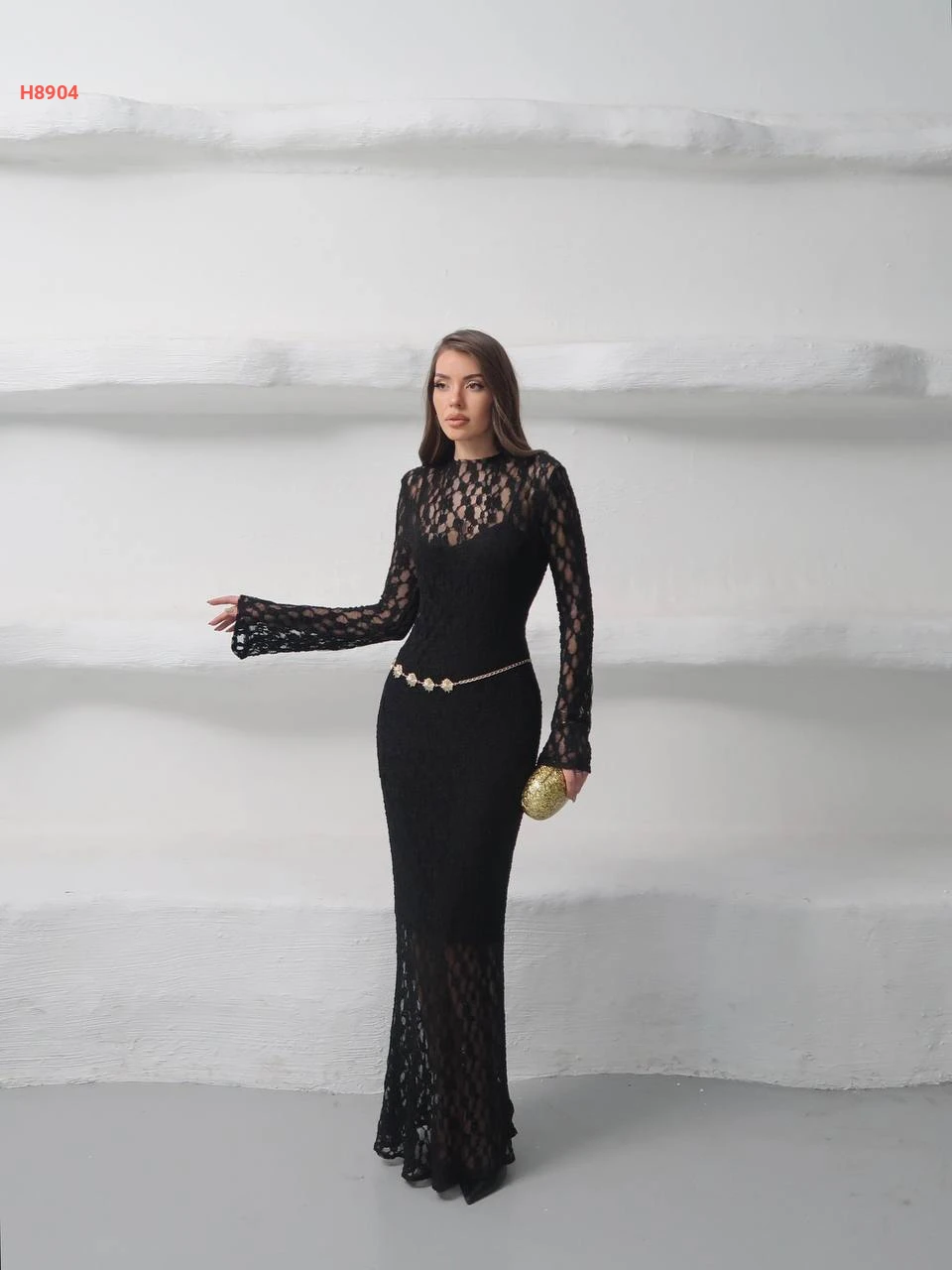 فستان دانتيل طويل مع اكسسوار