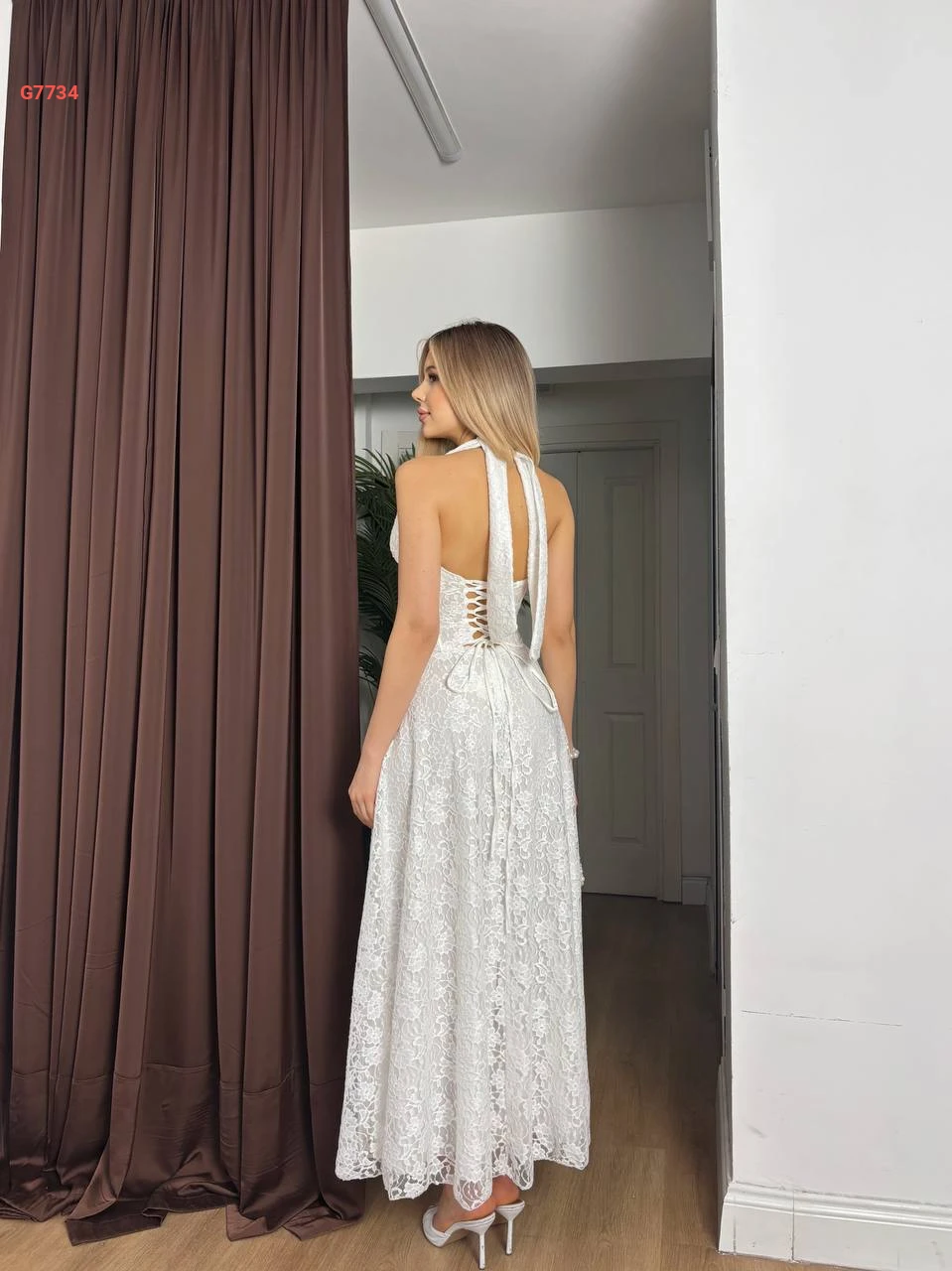 فستان طويل دانتيل مبطن مع ربطات