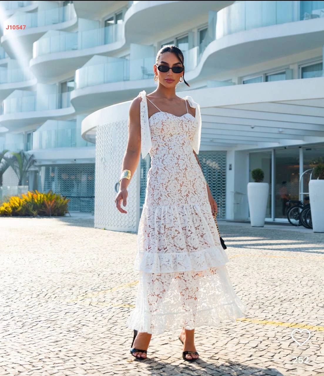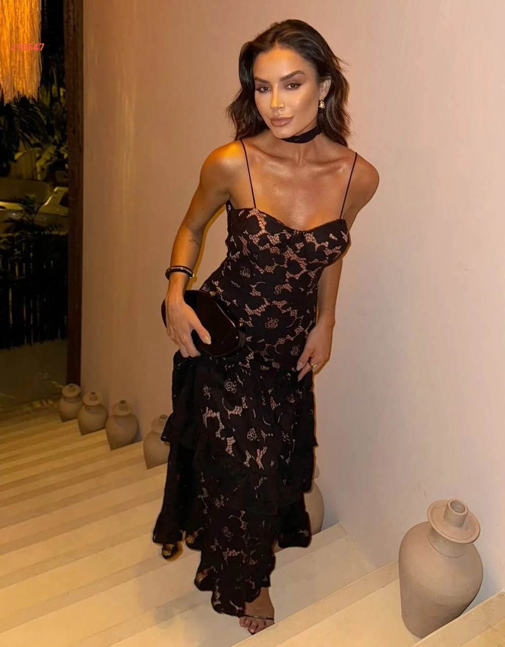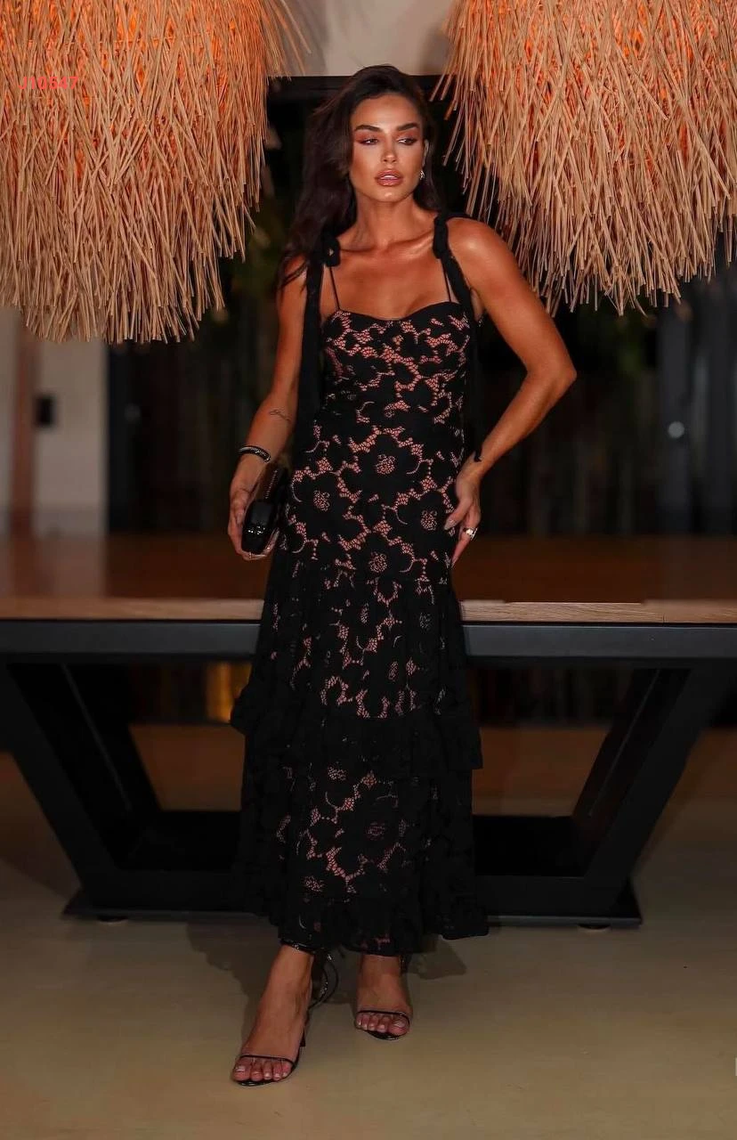 فستان طويل دانتيل بربطات عالكتف