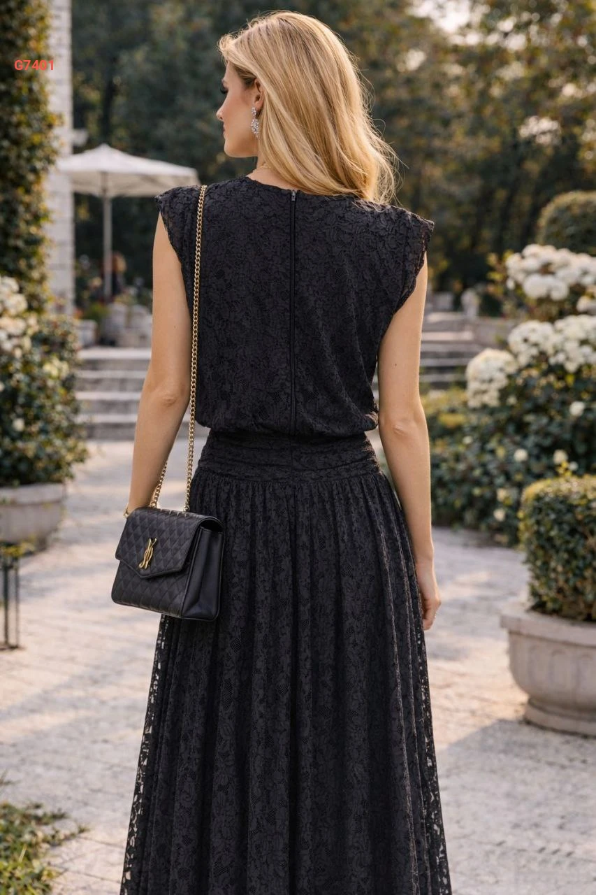 فستان طويل دانتيل حفر مبطن
