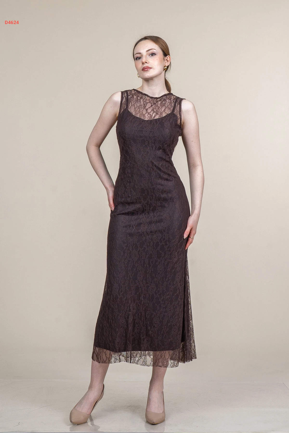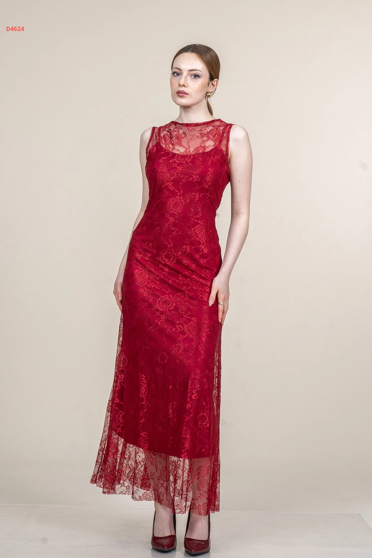 فستان طويل دانتيل حفر