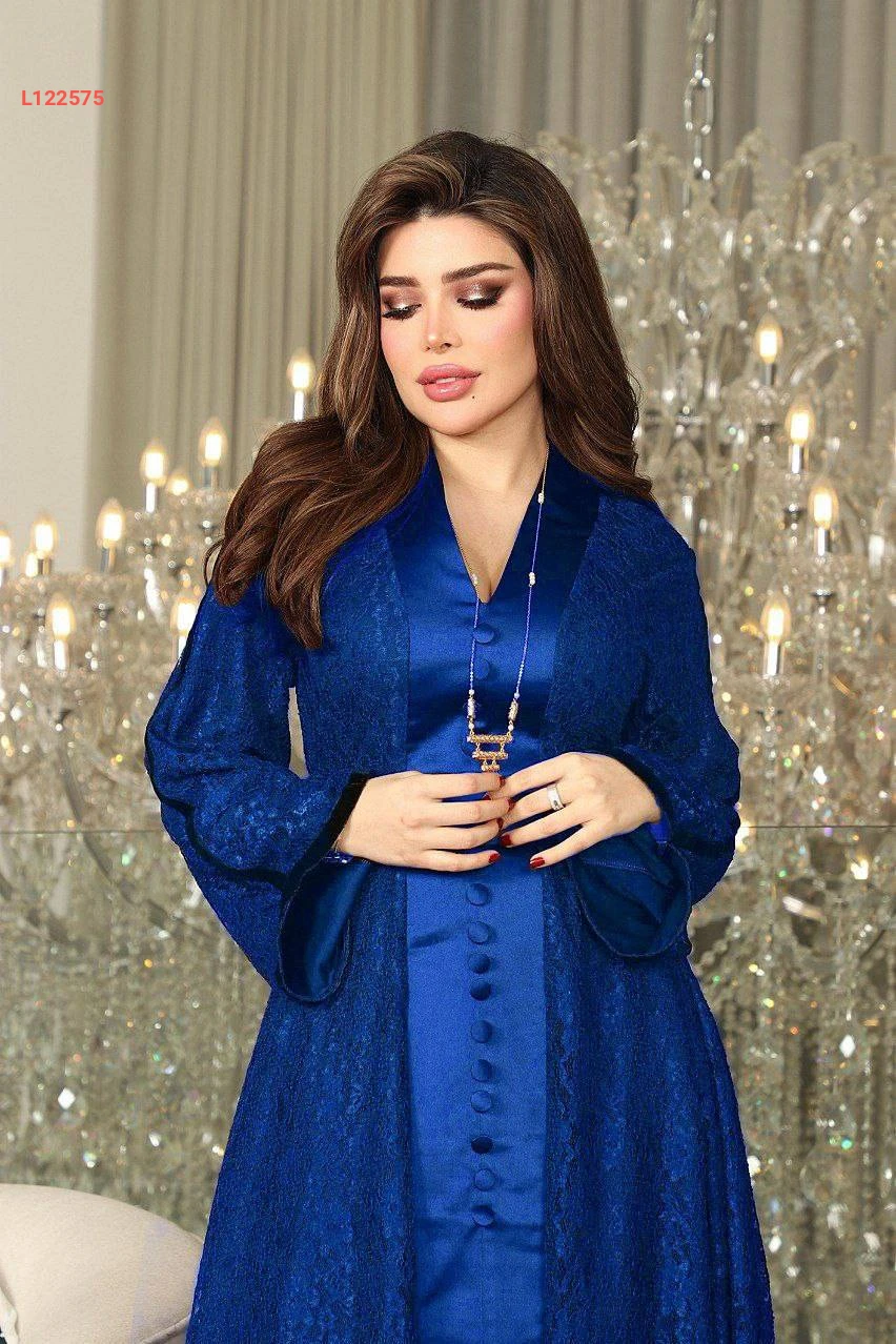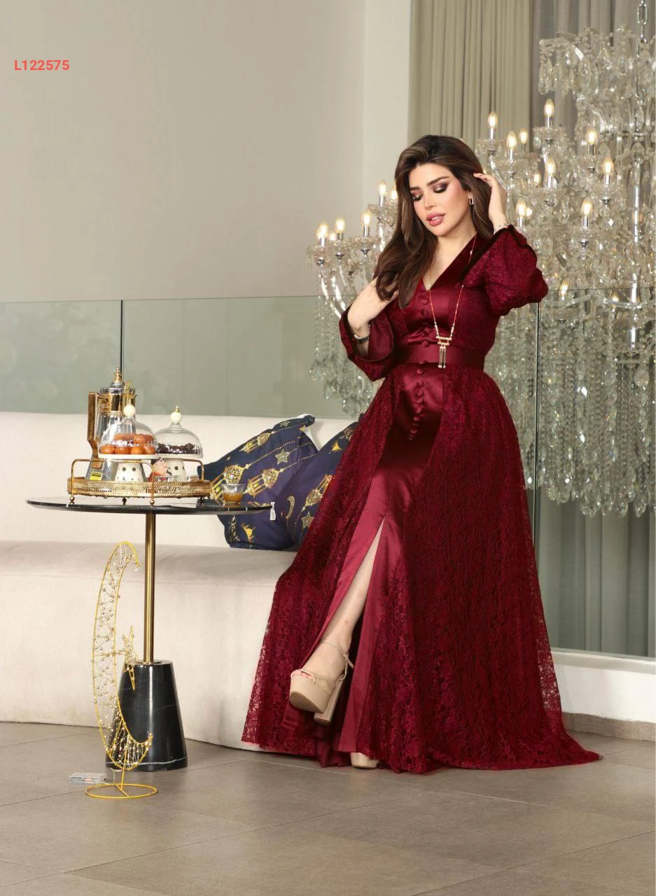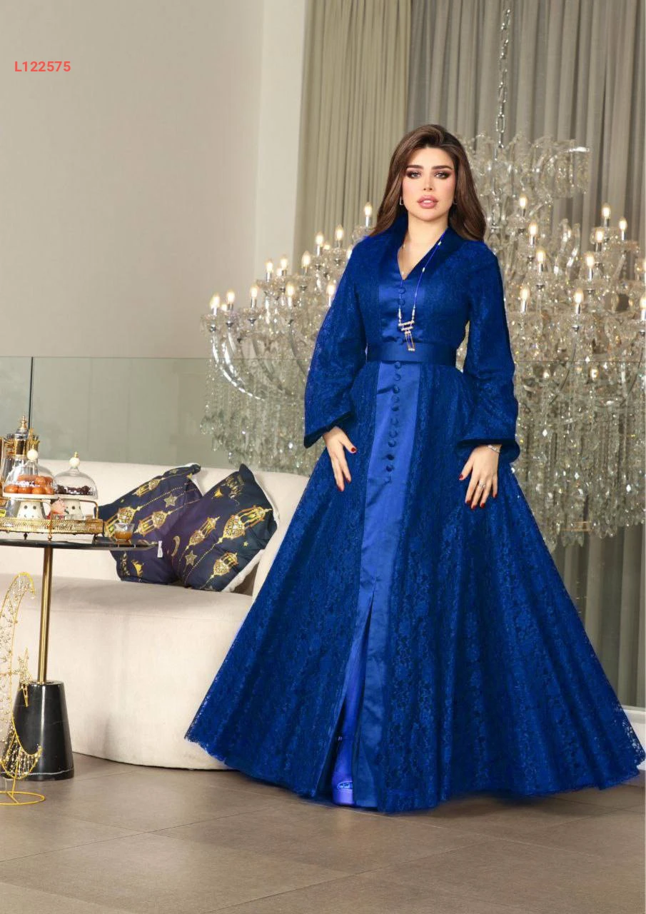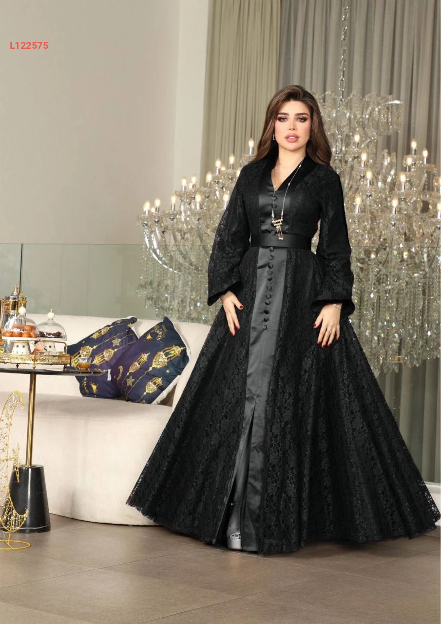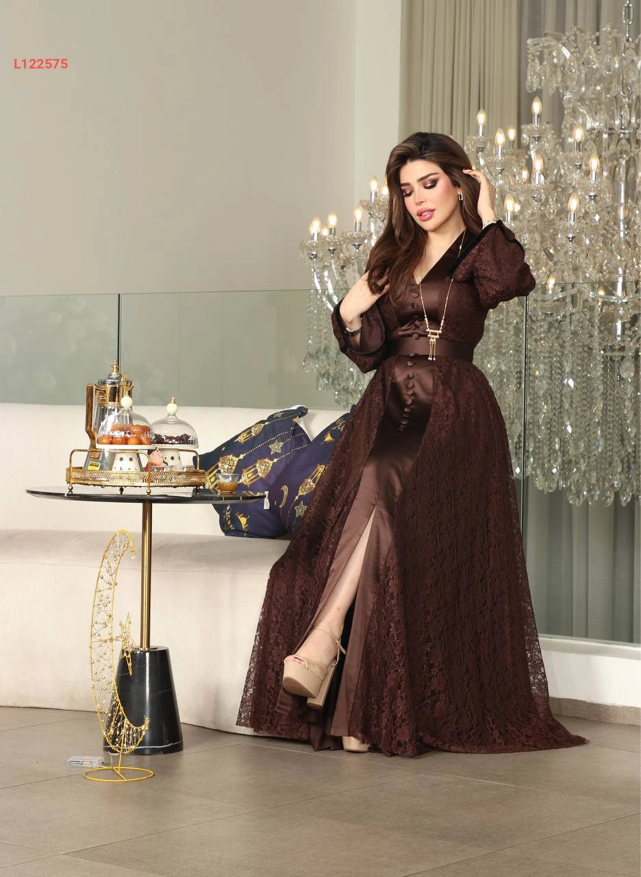 فستان طويل دانتيل كلوش مبطن بأزرار