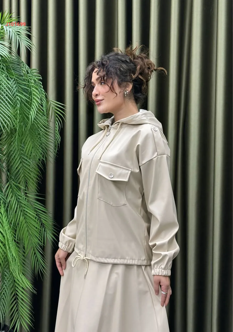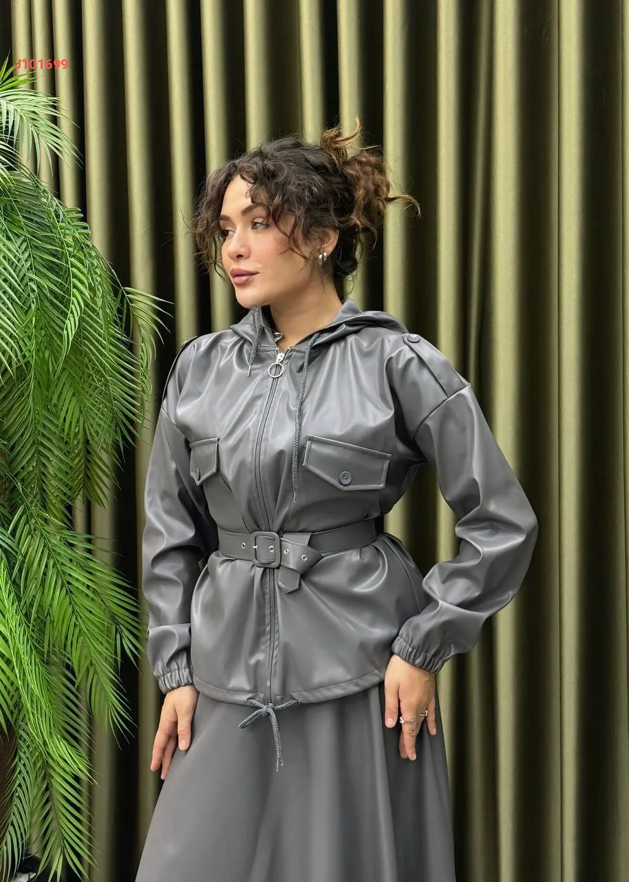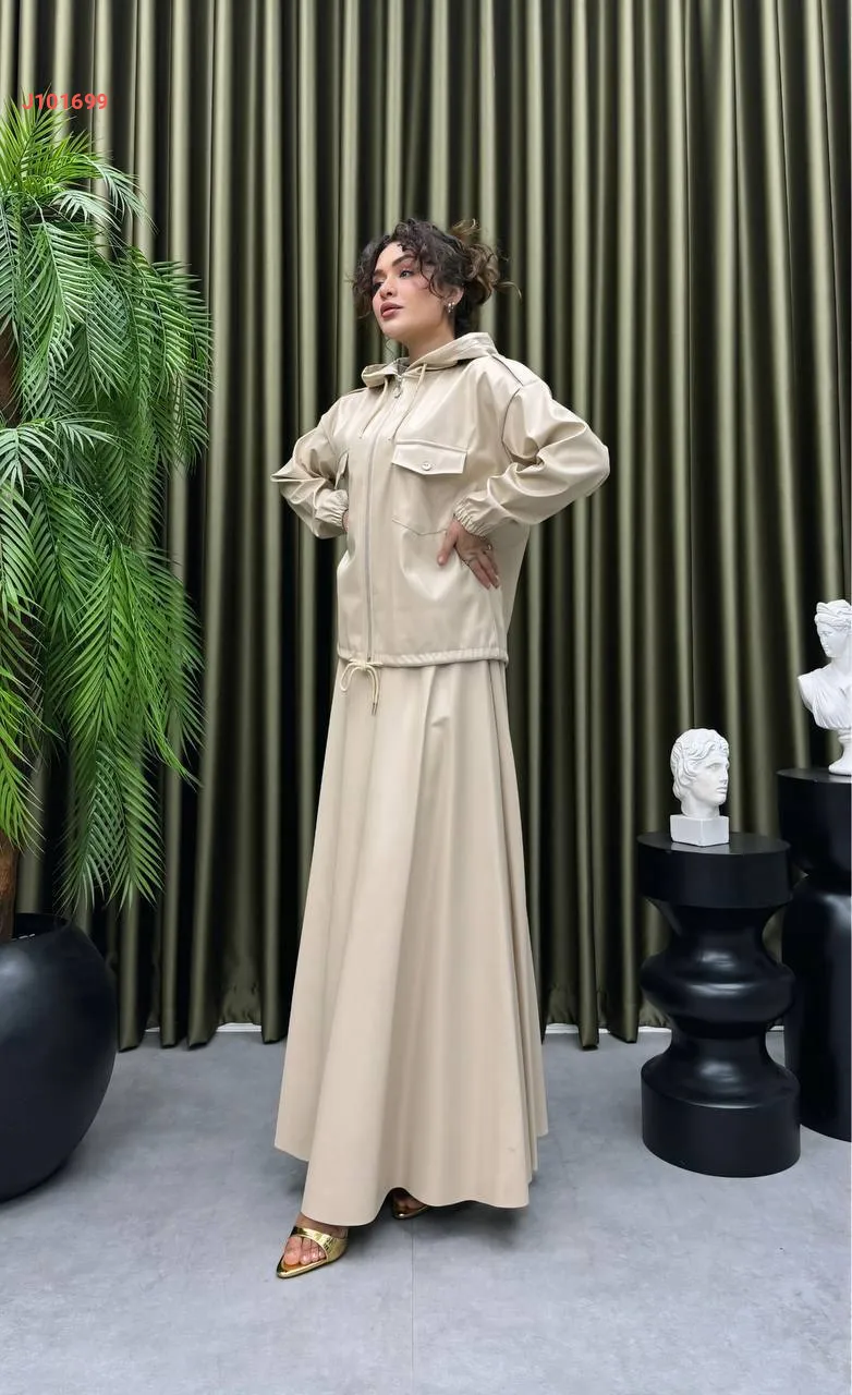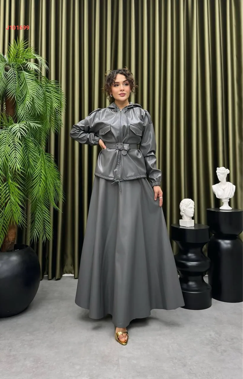 طقم تنورة جلد طويل