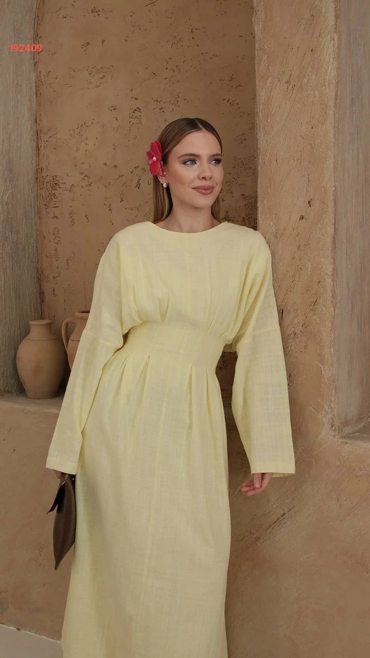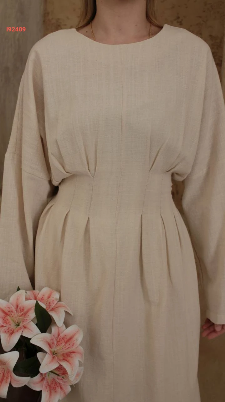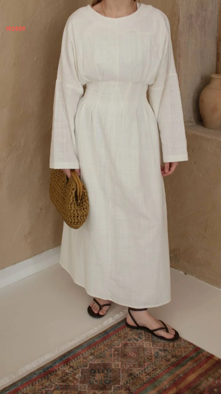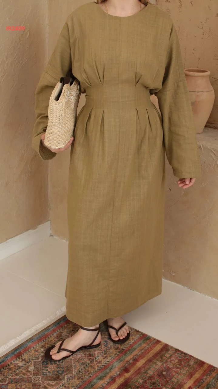 فستان طويل كتان مخصر