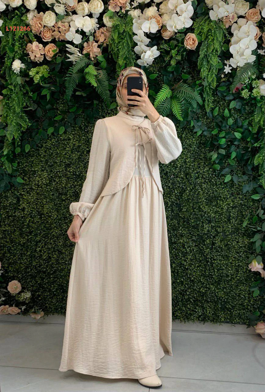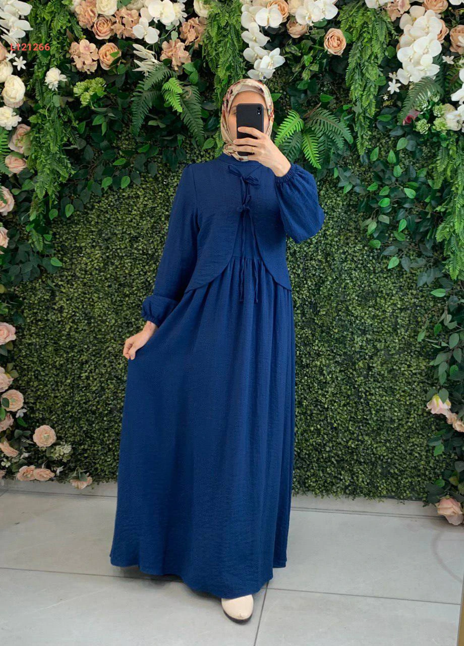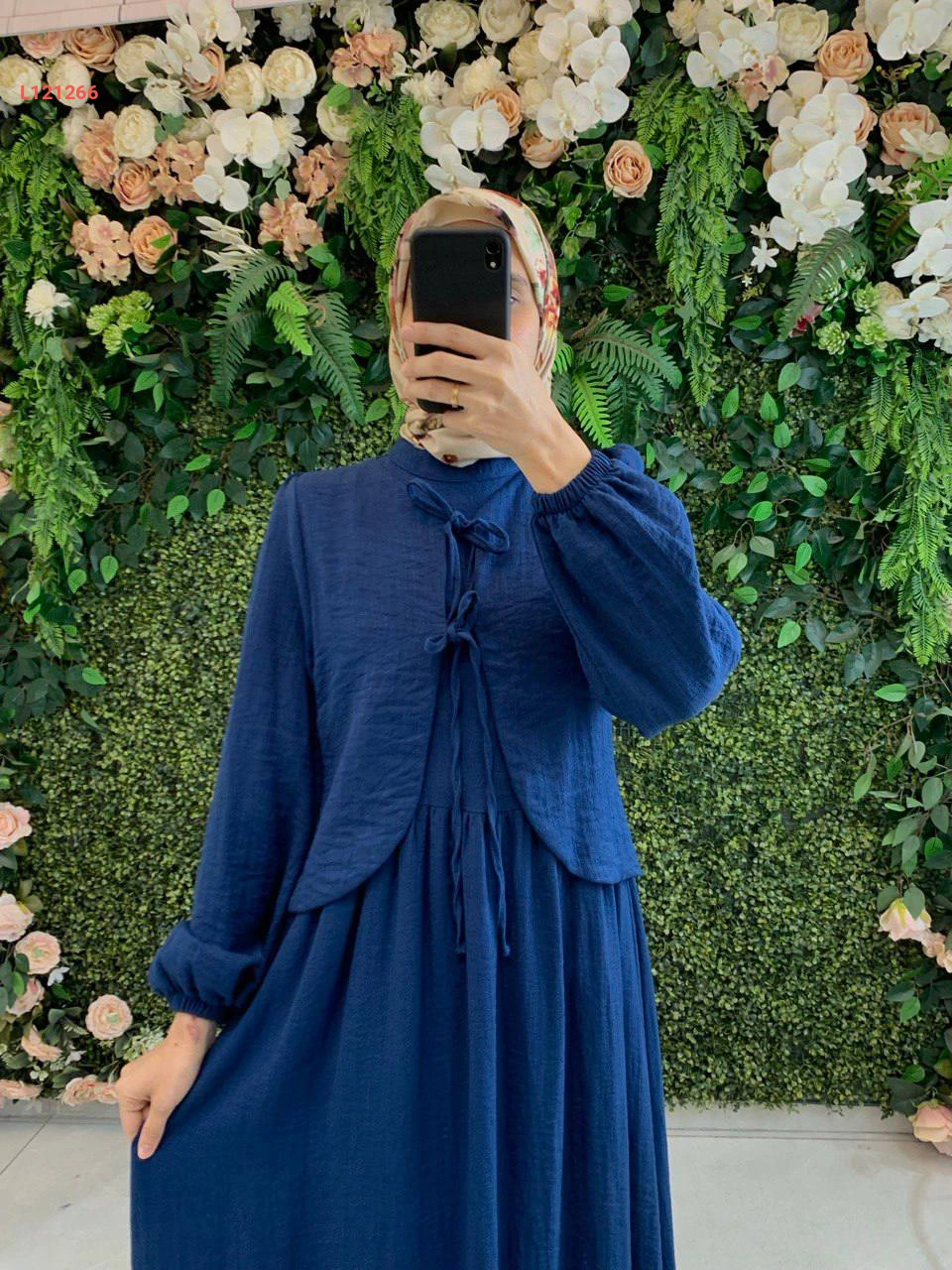 فستان طويل كتان بتفاصيل جاكيت بربطات