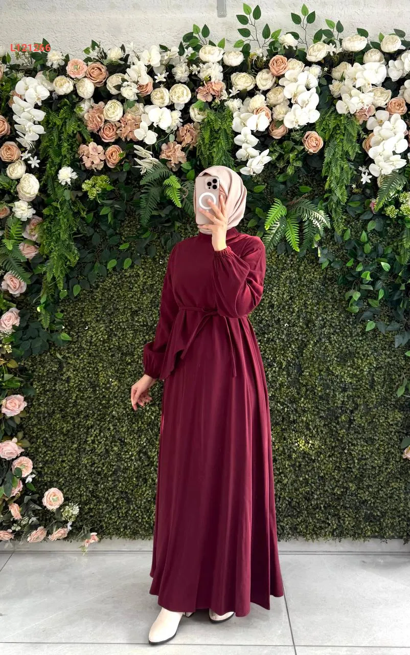 فستان مودال طويل مع زنار