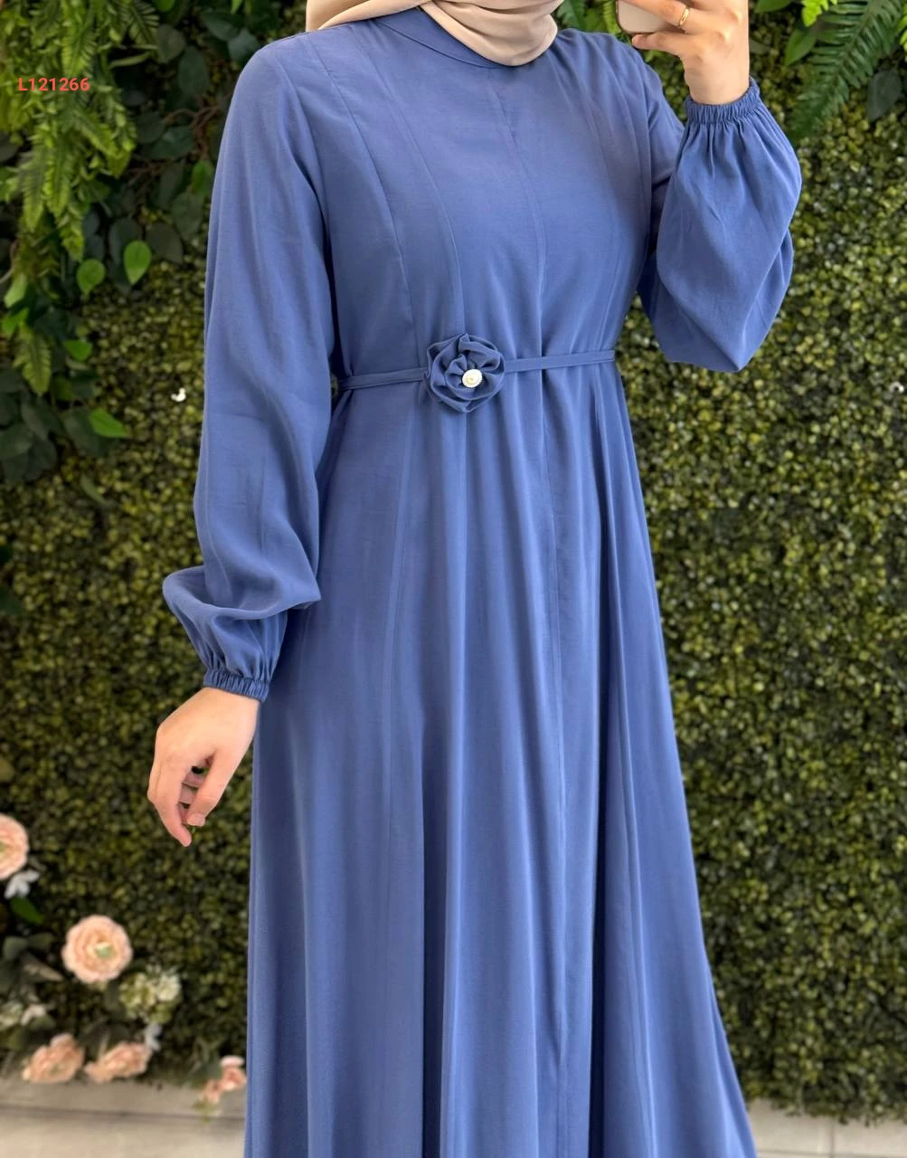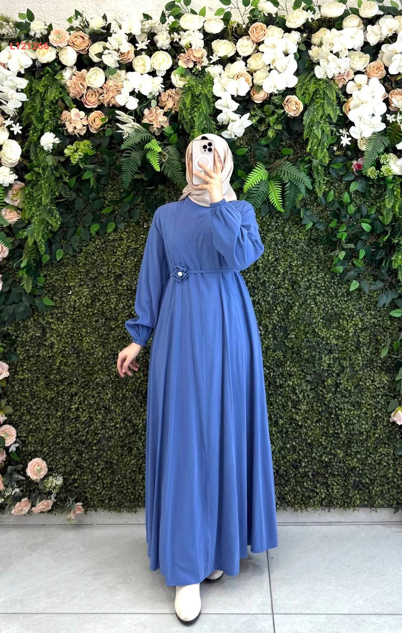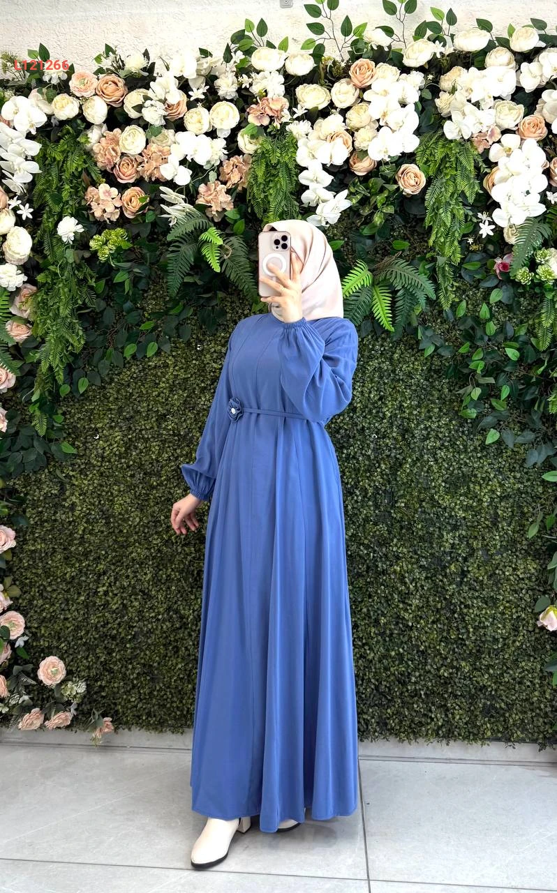 فستان طويل مودال مع زنار بوردة