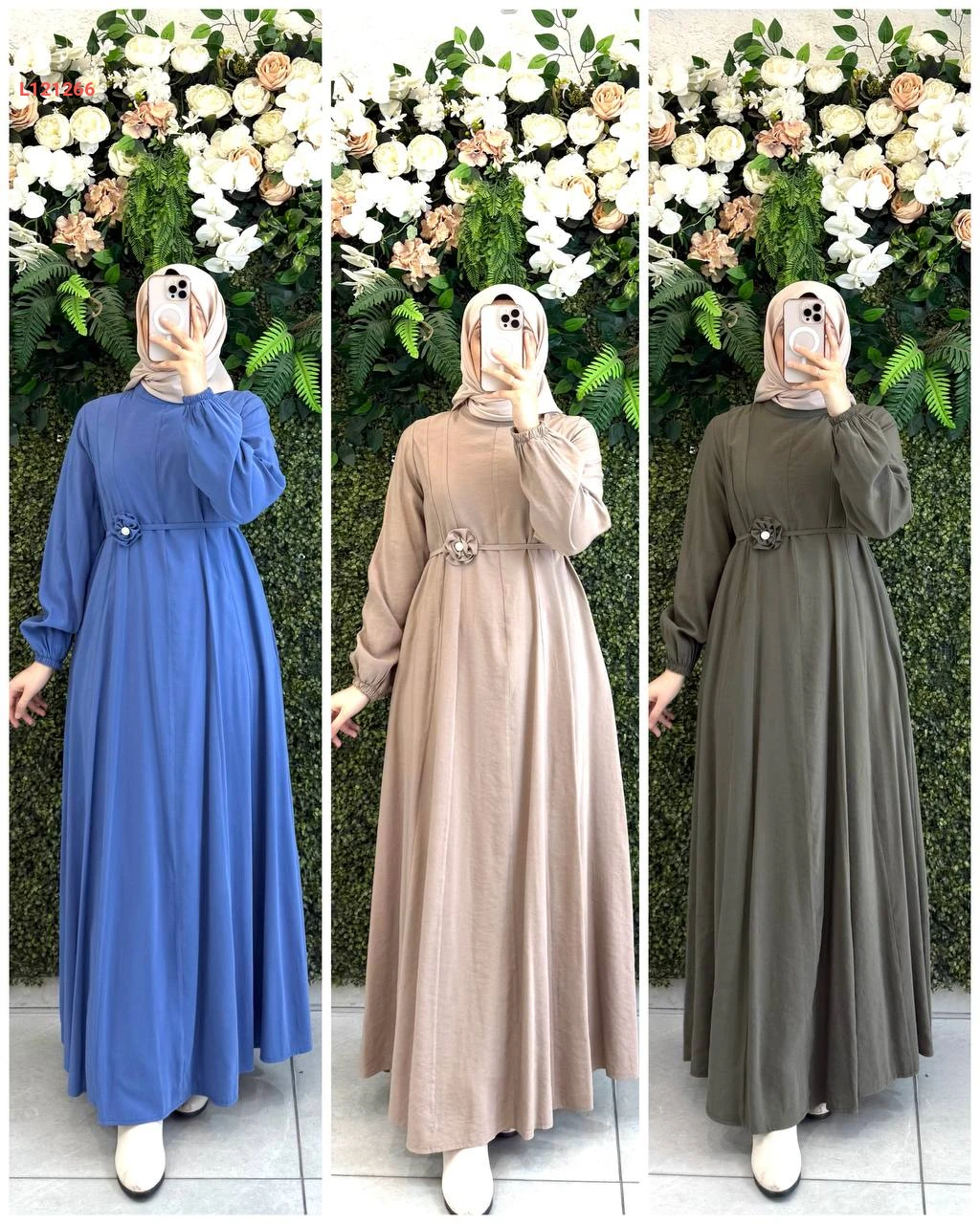 فستان طويل مودال مع زنار بوردة