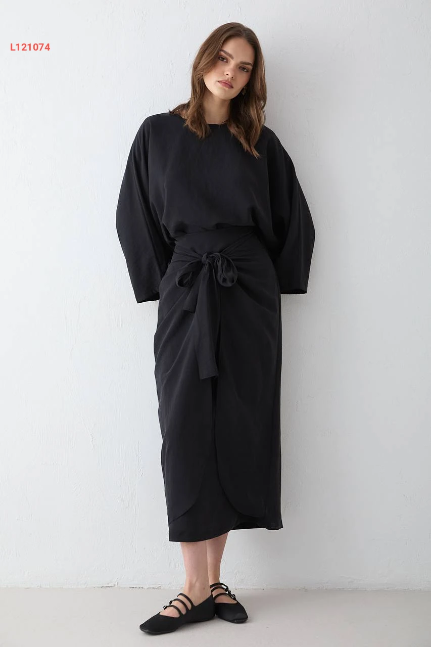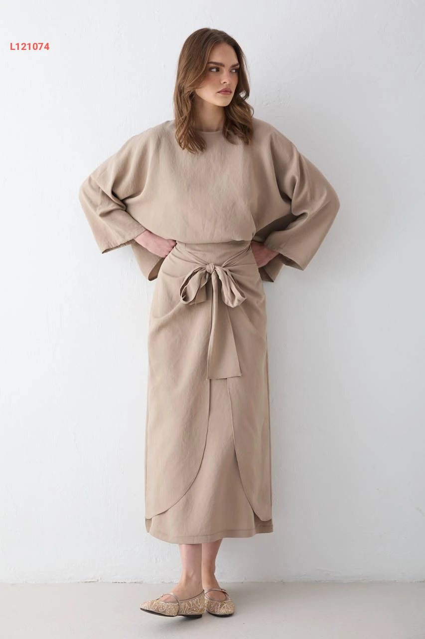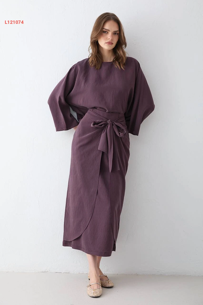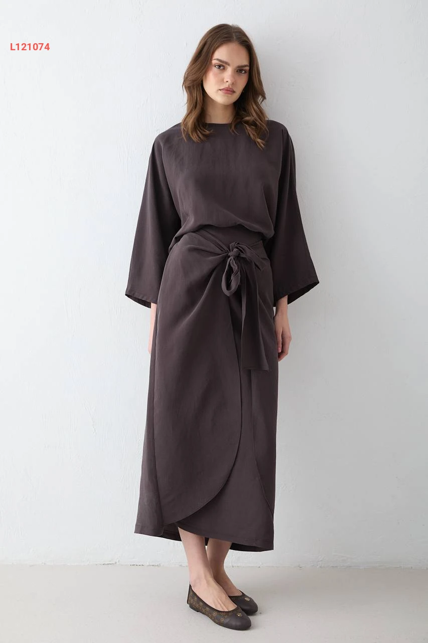 طقم تنورة مودال طويل بربطة
