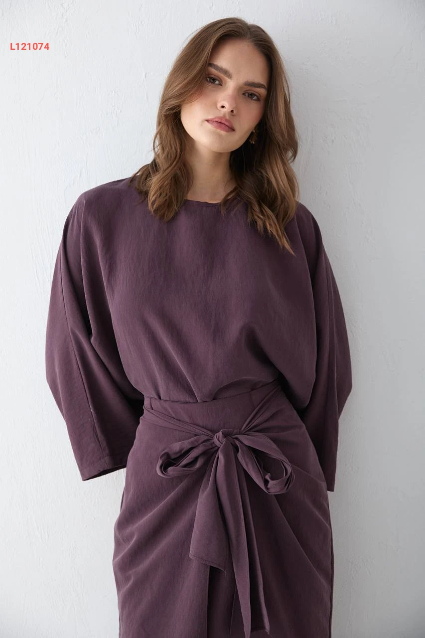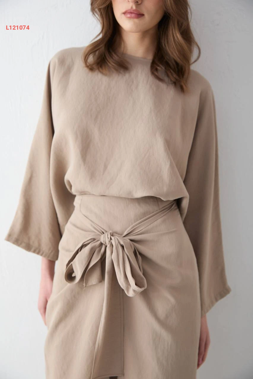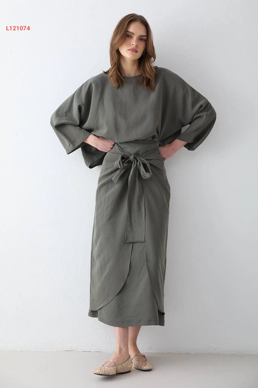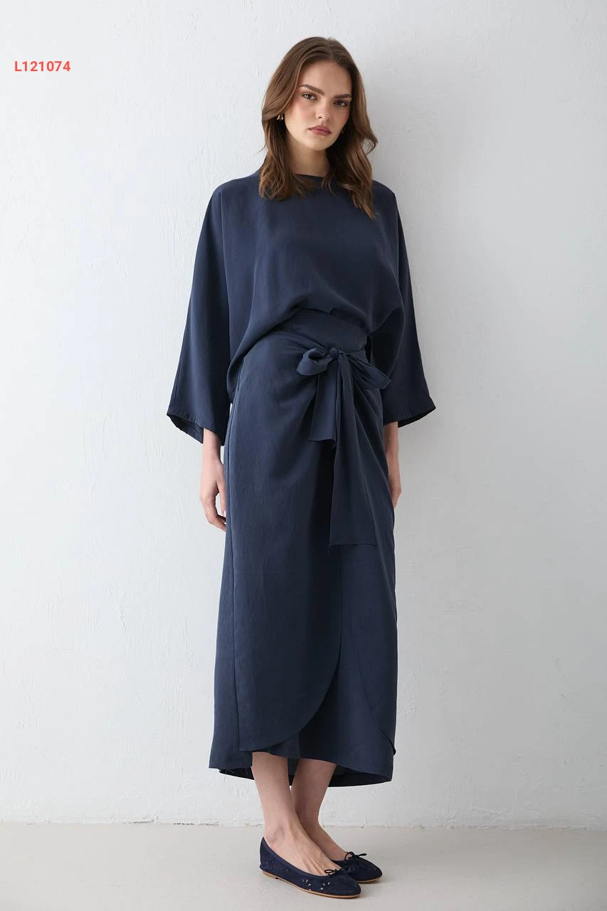 طقم تنورة مودال طويل بربطة