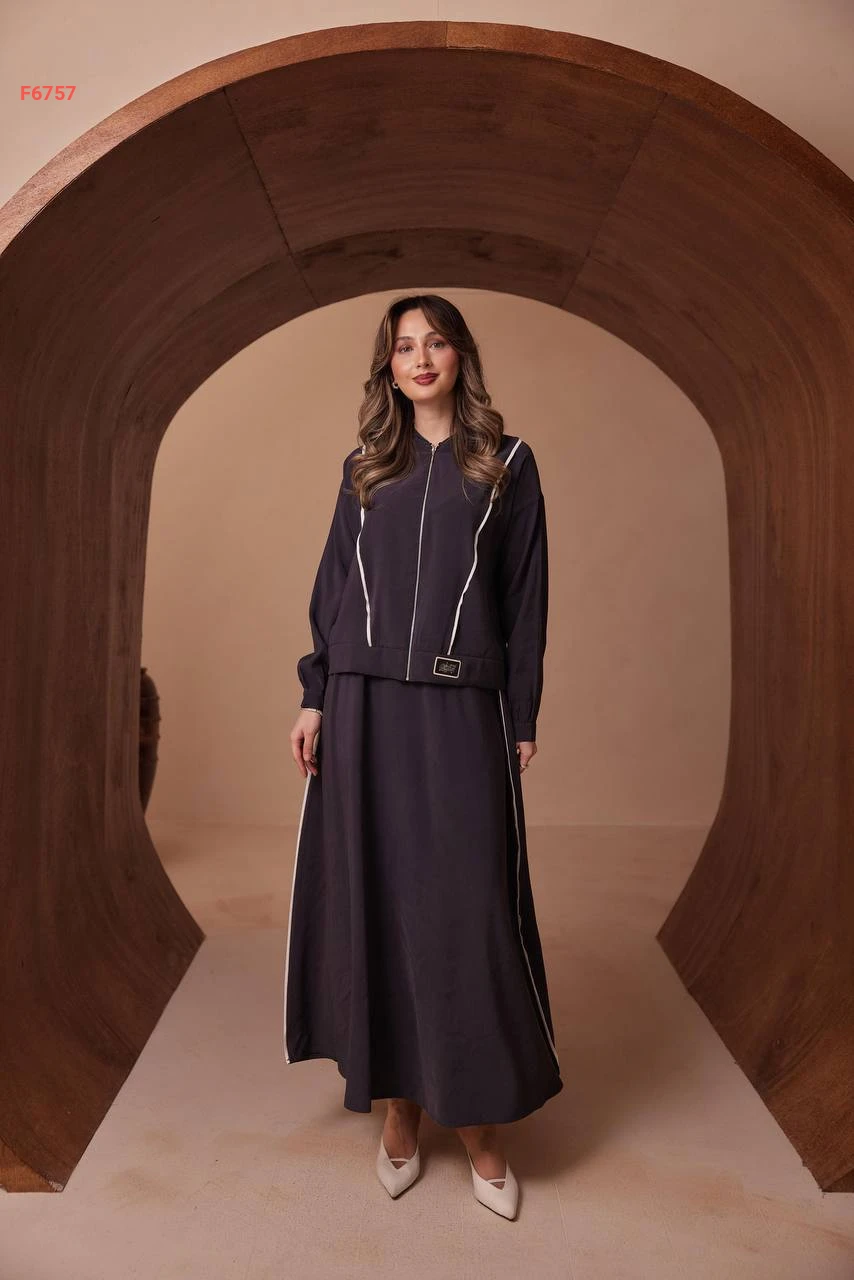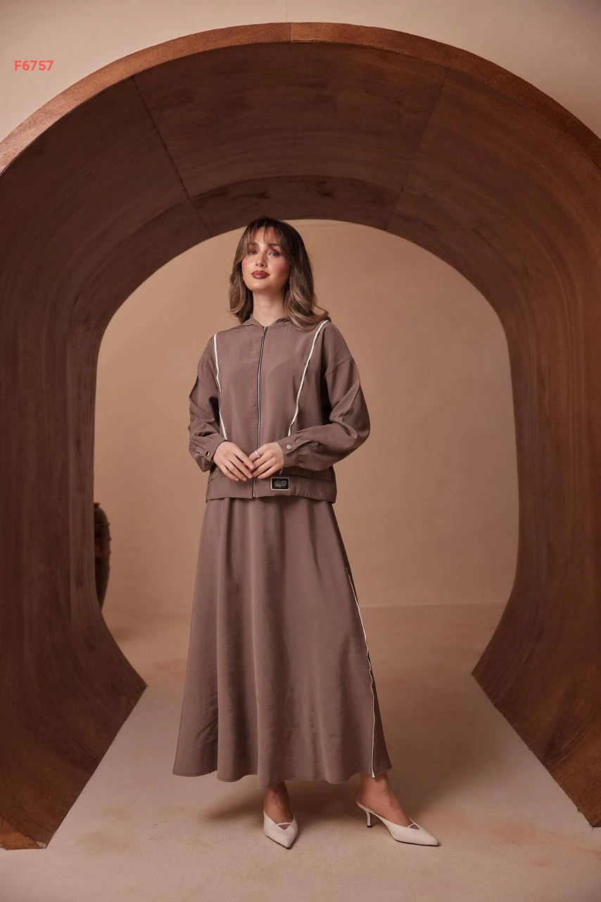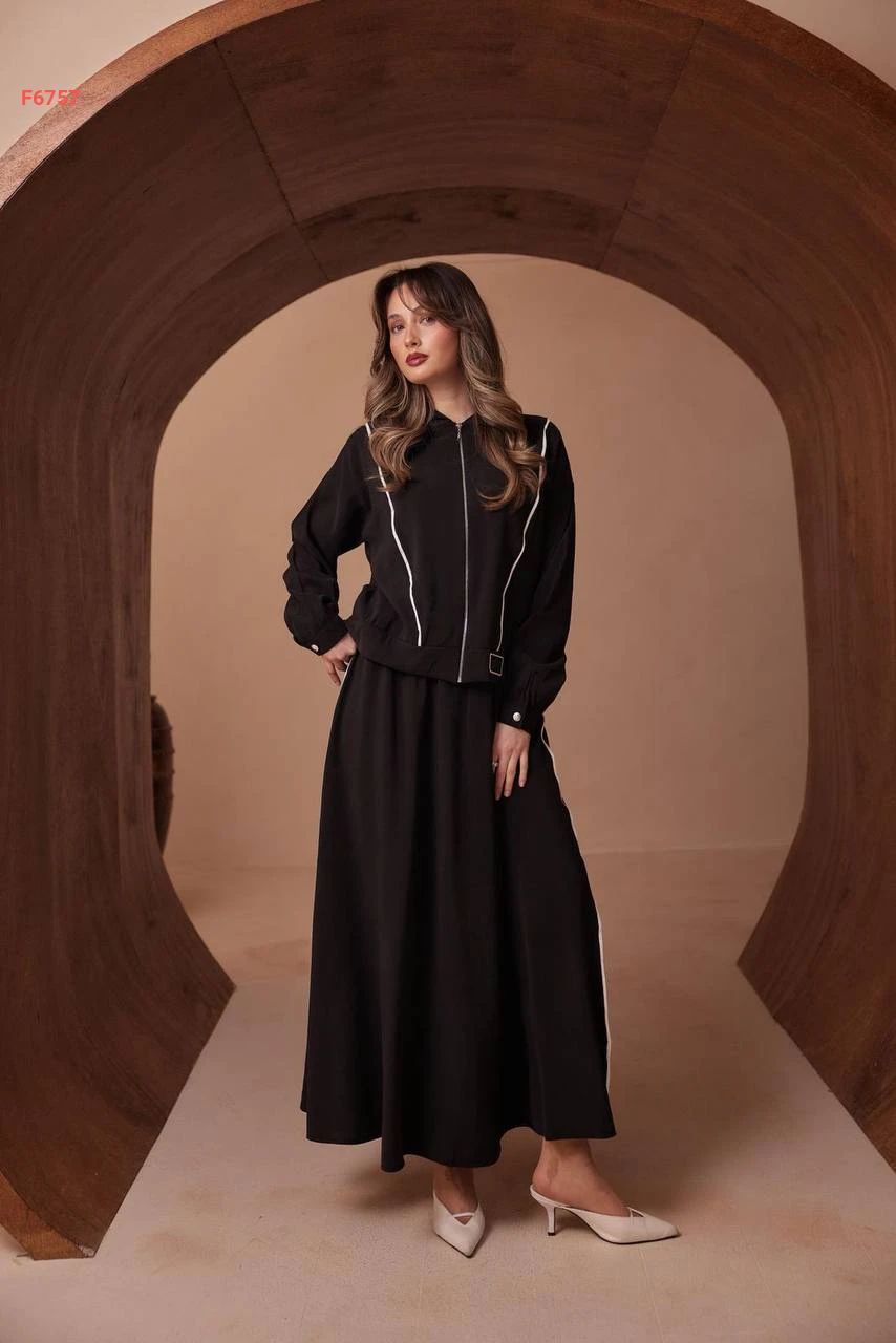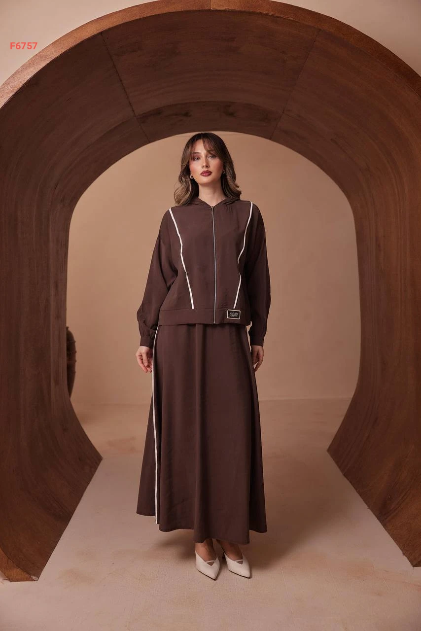 طقم تنورة طويل مودال وجاكيت بسحاب